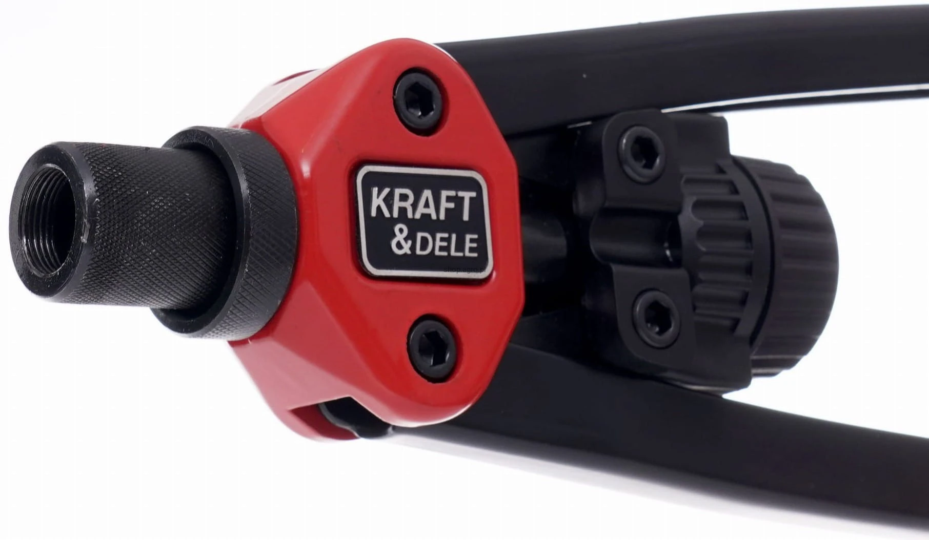 KD10556 to profesjonalna nitownica ręczna marki KRAFT&DELE, przeznaczona do wykonywania solidnych połączeń z użyciem nitonakrętek. Narzędzie zostało wykonane z wysokiej jakości materiałów, w tym stali oraz aluminium, co zapewnia trwałość, odporność na obciążenia oraz długą żywotność podczas intensywnej pracy.