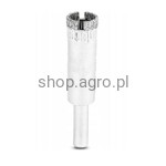 - Otwornica została wykonana z wysokiej jakości stali węglowej a część roboczą stanowi bardzo drobny i gęsty nasyp diamentowy lutowany próżniowo do walcowego stalowego korpusu