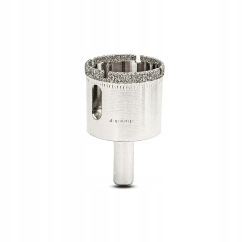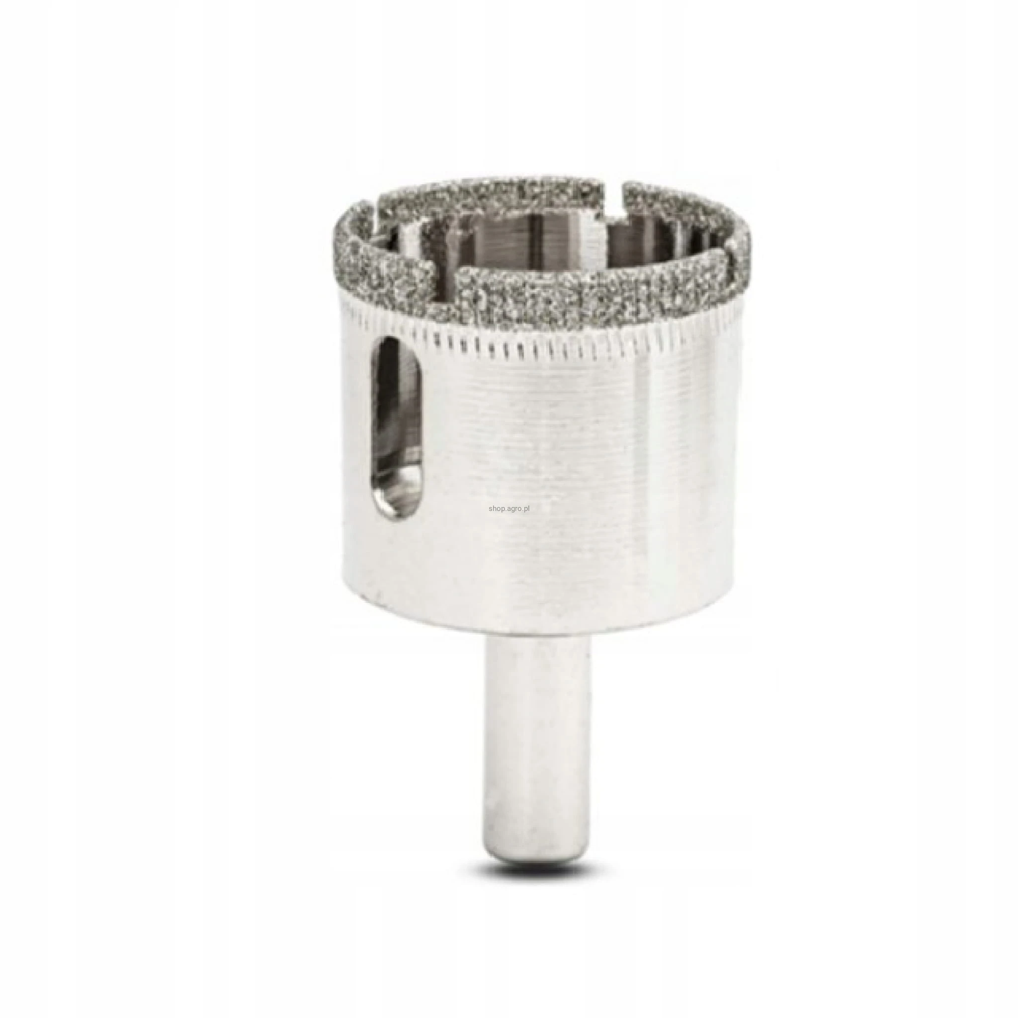 - Otwornica została wykonana z wysokiej jakości stali węglowej a część roboczą stanowi bardzo drobny i gęsty nasyp diamentowy lutowany próżniowo do walcowego stalowego korpusu