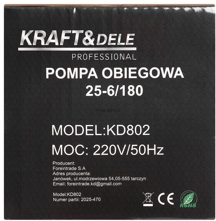 KRAFT&DELE KD802 to nowoczesna pompa obiegowa charakteryzująca się cichą pracą i wysoką wydajnością. Idealnie sprawdza się w instalacjach grzewczych, gdzie kluczowe znaczenie ma niezawodne i energooszczędne działanie. Dzięki kompaktowej konstrukcji i solidnemu wykonaniu model KD802 gwarantuje długą żywotność oraz bezproblemową eksploatację.