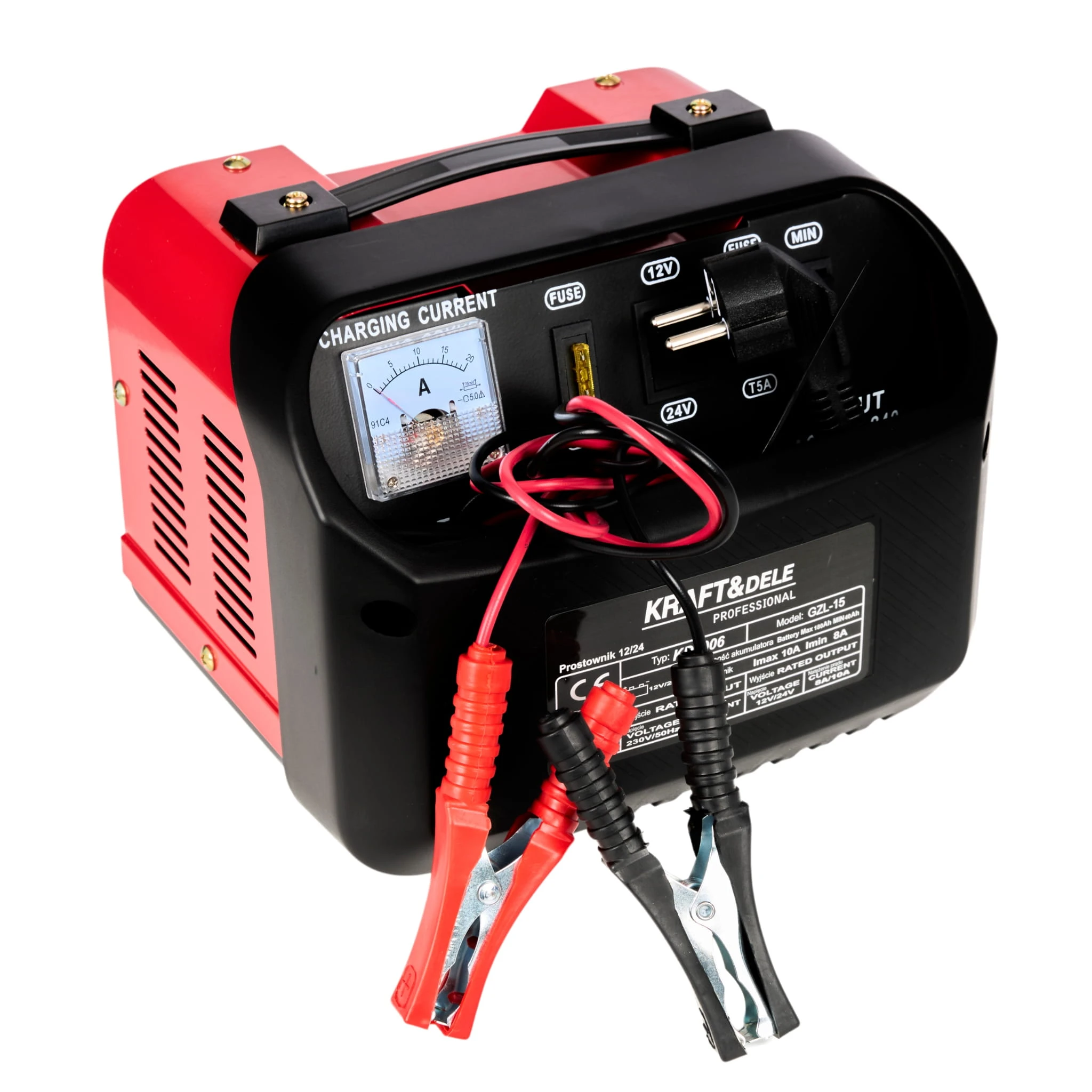 Wbudowany amperomierz zamontowany w urządzeniu wskazuje poziom naładowania akumulatora. Duża moc pozwala na wszechstronne zastosowanie prostownika.