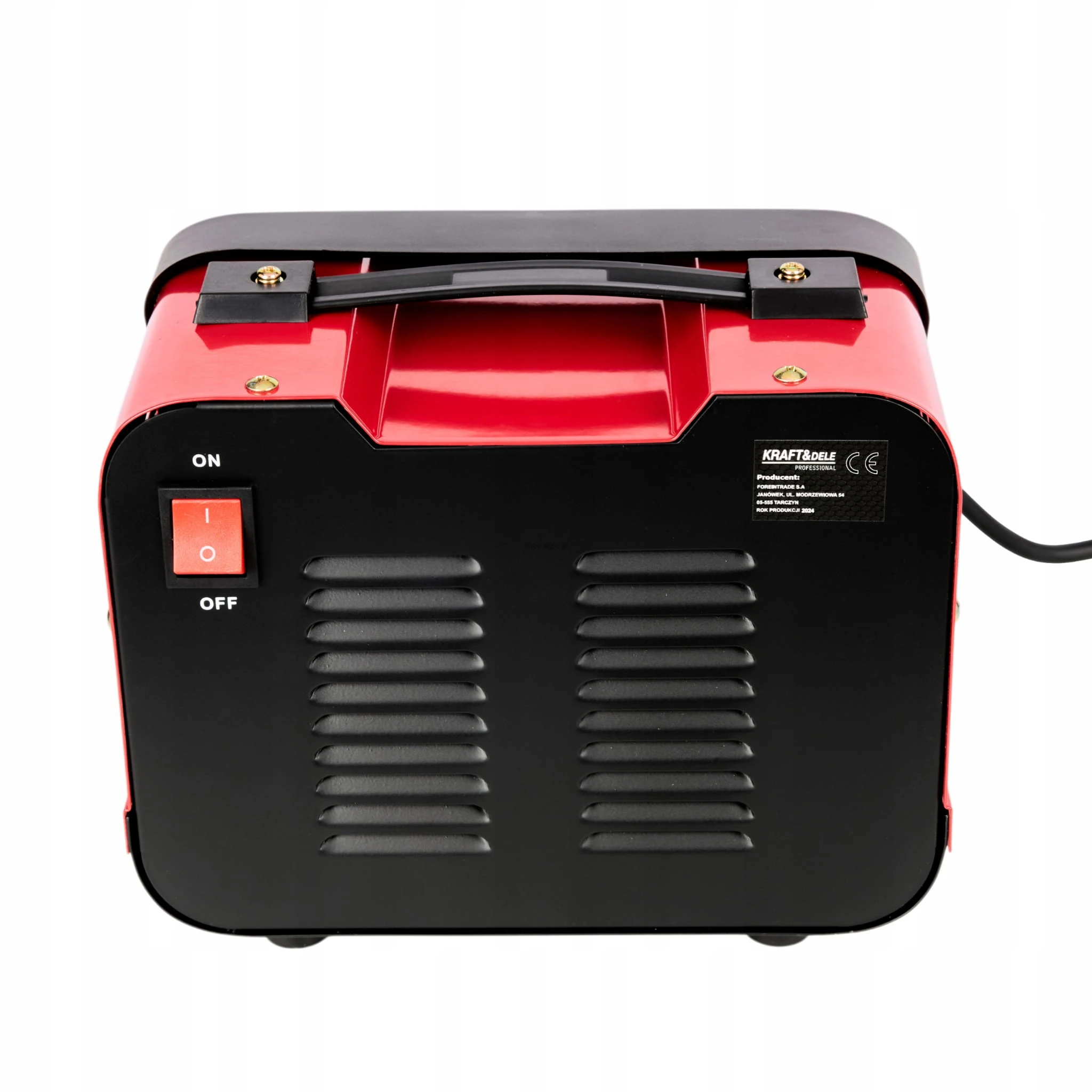 Metalowa obudowa prostownika posiada dużo otworów, dzięki czemu urządzenie jest dobrze wentylowane i chłodzone podczas pracy.