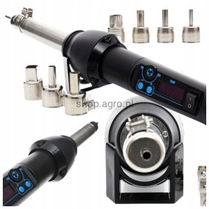 - Spawarka posiada funkcję płynnej regulacji temperatury grota, wydmuchiwanego powietrza oraz siły.