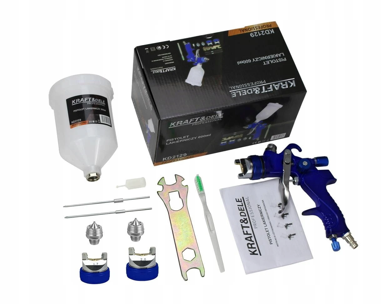 Pistolet Lakierniczy 600 ml 4 bar Dysze 2x 1,7 2 mm 90-170 l/min Kraft&Dele