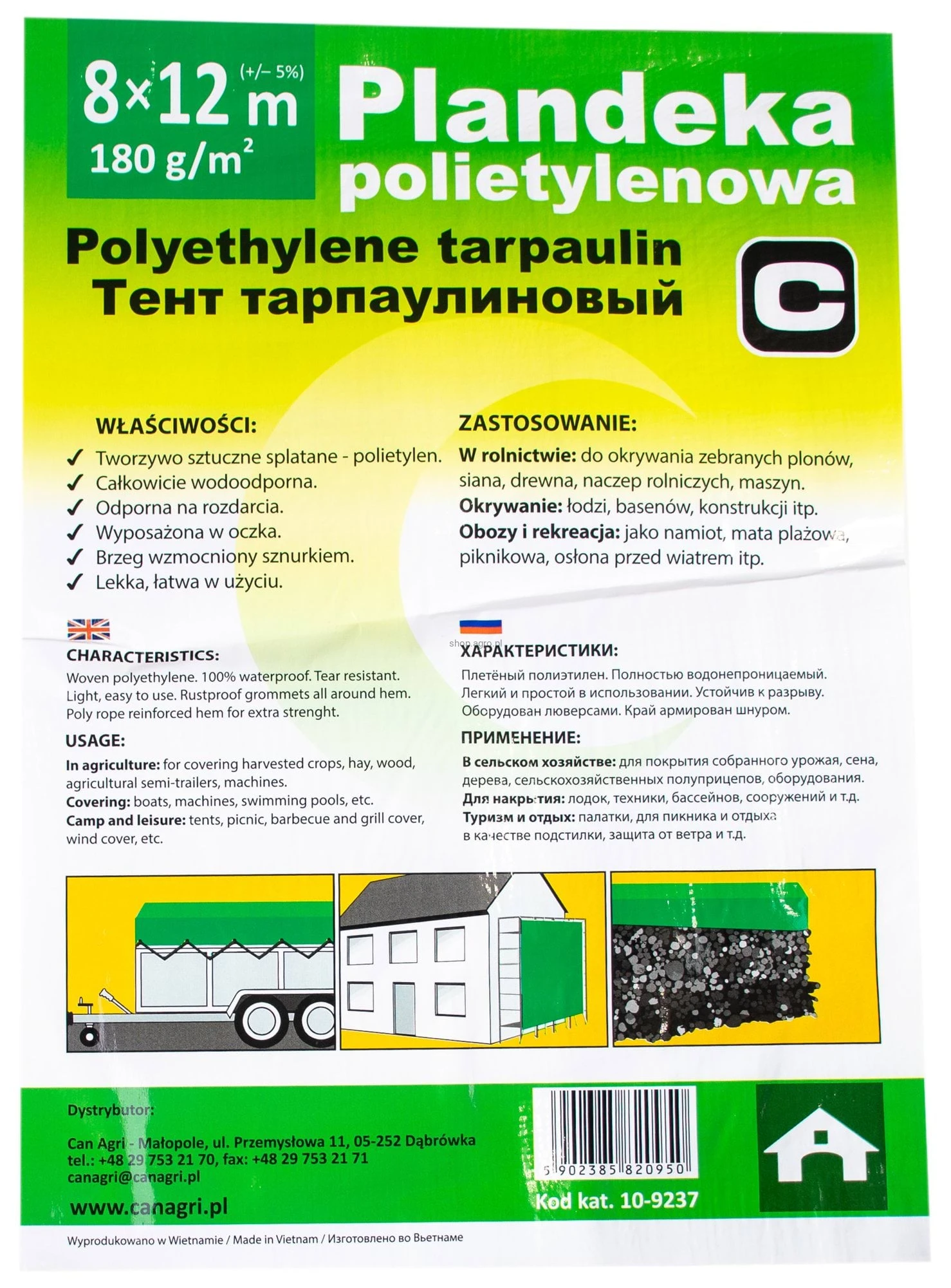 Plandeka 8x12 m, 180 g, zielona, PE, Canagri