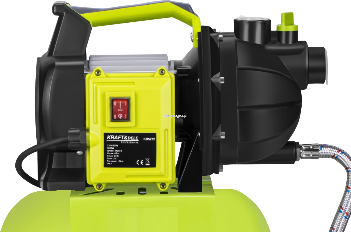 KD5272 to wydajna pompa hydroforowa marki KRAFT&DELE o mocy 1200W, przeznaczona do nawadniania ogrodów, parków, grządek warzywnych oraz obsługi zraszaczy trawnikowych. Dzięki zintegrowanemu zbiornikowi hydroforowemu o pojemności 20 litrów urządzenie zapewnia stabilne ciśnienie w instalacji wodnej oraz komfortowe użytkowanie.