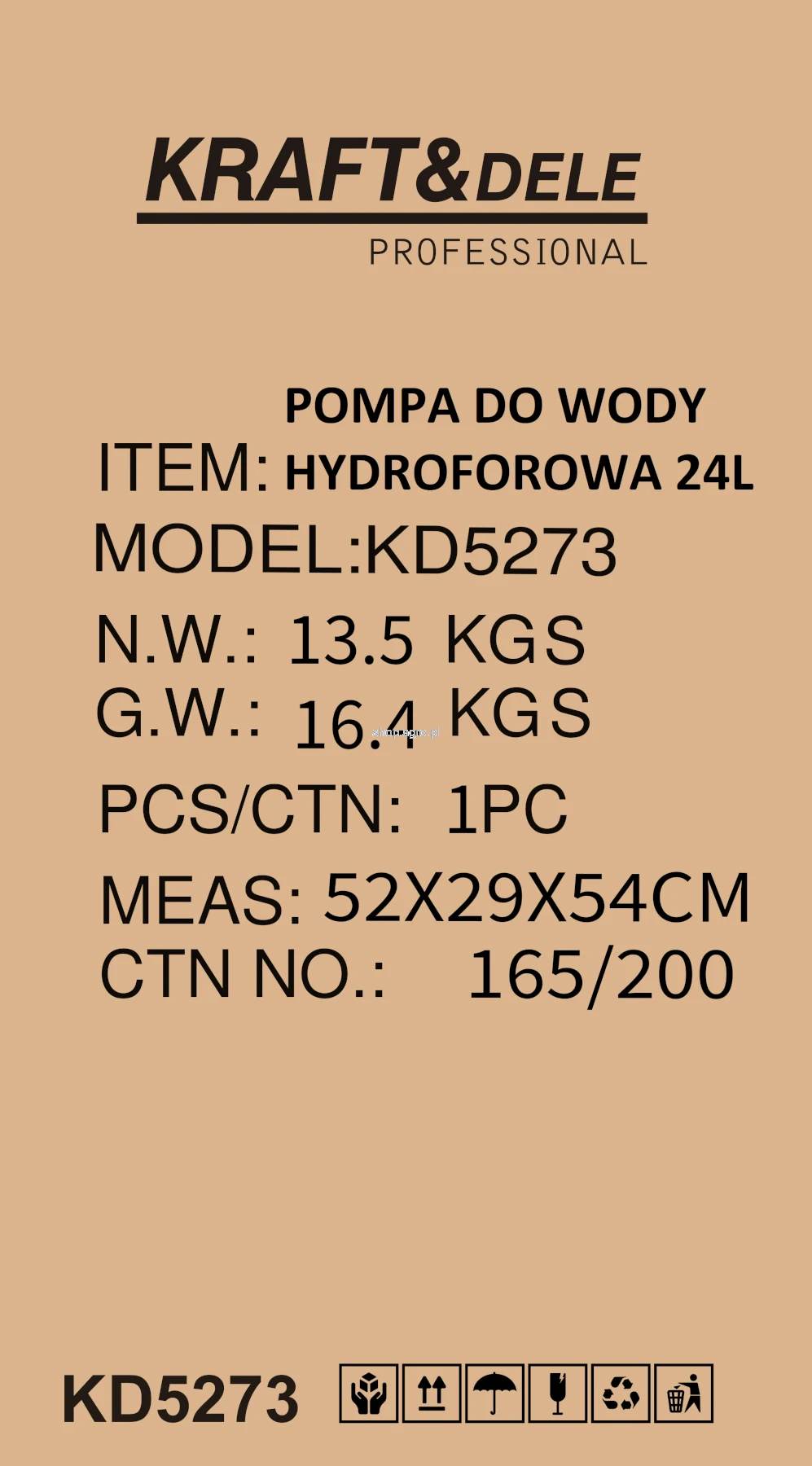 KD5273 to wydajna pompa hydroforowa marki KRAFT&DELE o mocy 1400W, przeznaczona do zasilania systemów nawadniających oraz dostarczania wody użytkowej w gospodarstwach domowych i ogrodach. Dzięki zbiornikowi hydroforowemu o pojemności 24 litrów urządzenie zapewnia stabilne ciśnienie w instalacji oraz komfortową pracę przy podlewaniu i obsłudze zraszaczy.