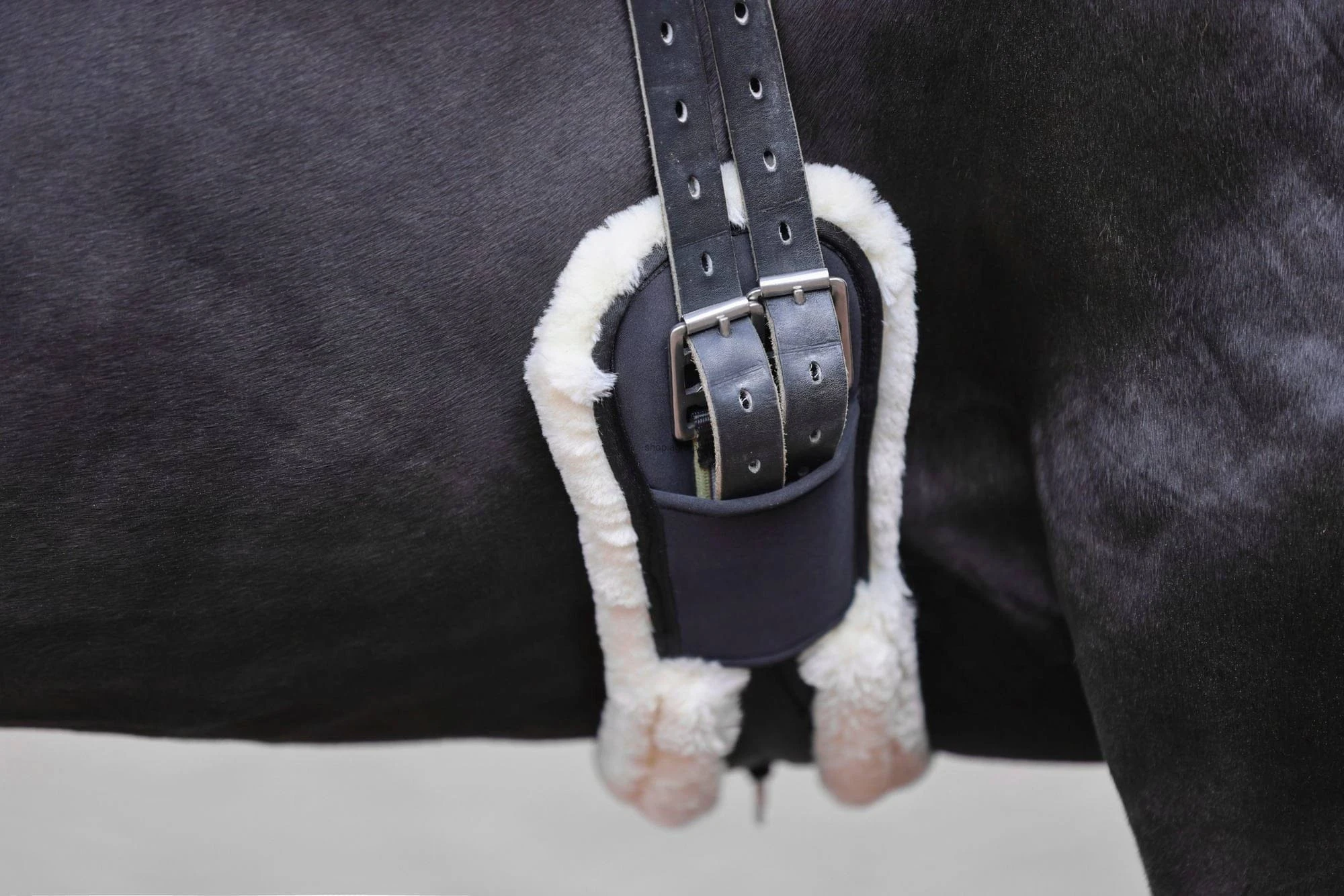 Popręg ujeżdżeniowy, 75 cm, ze sztucznym futrem, czarny, Covalliero