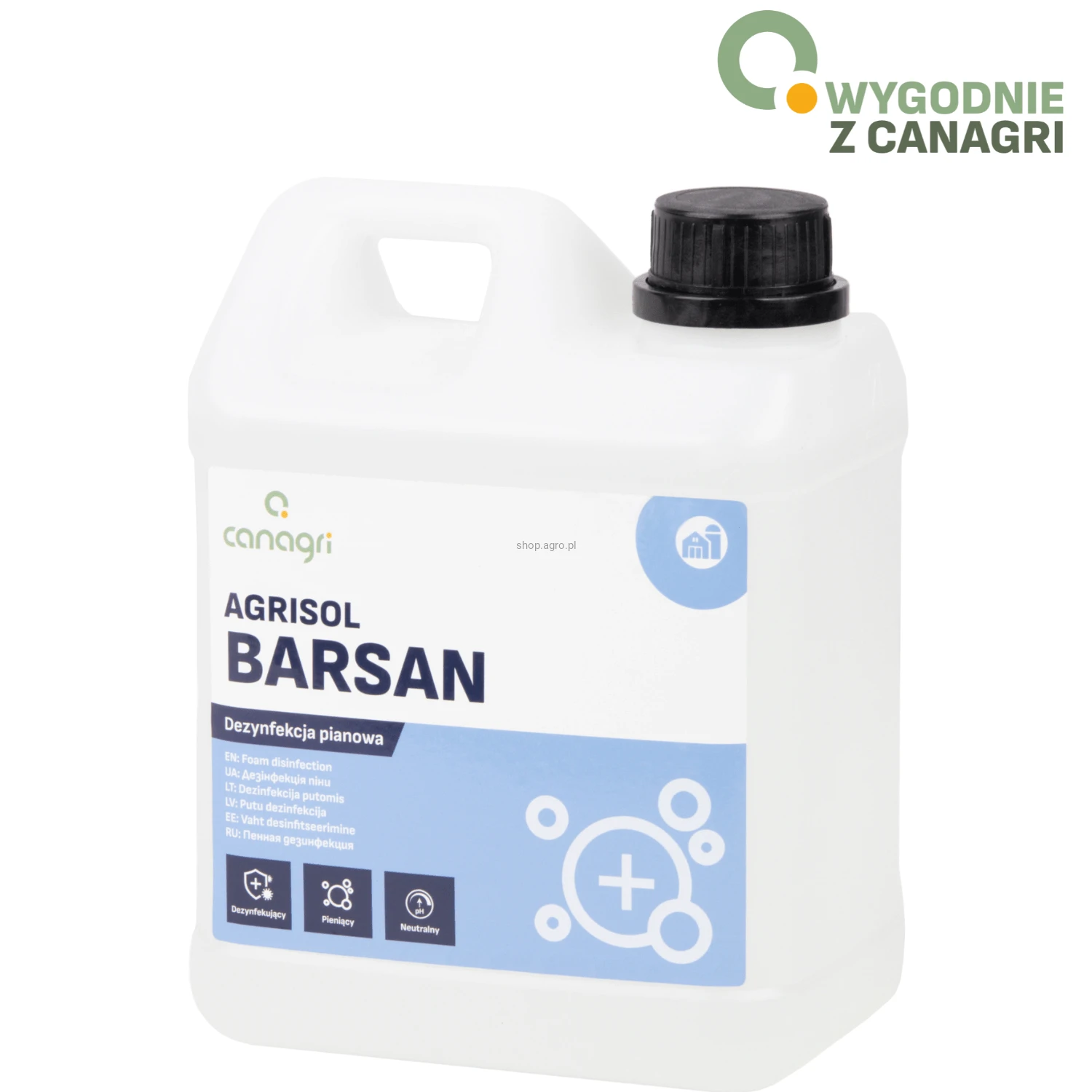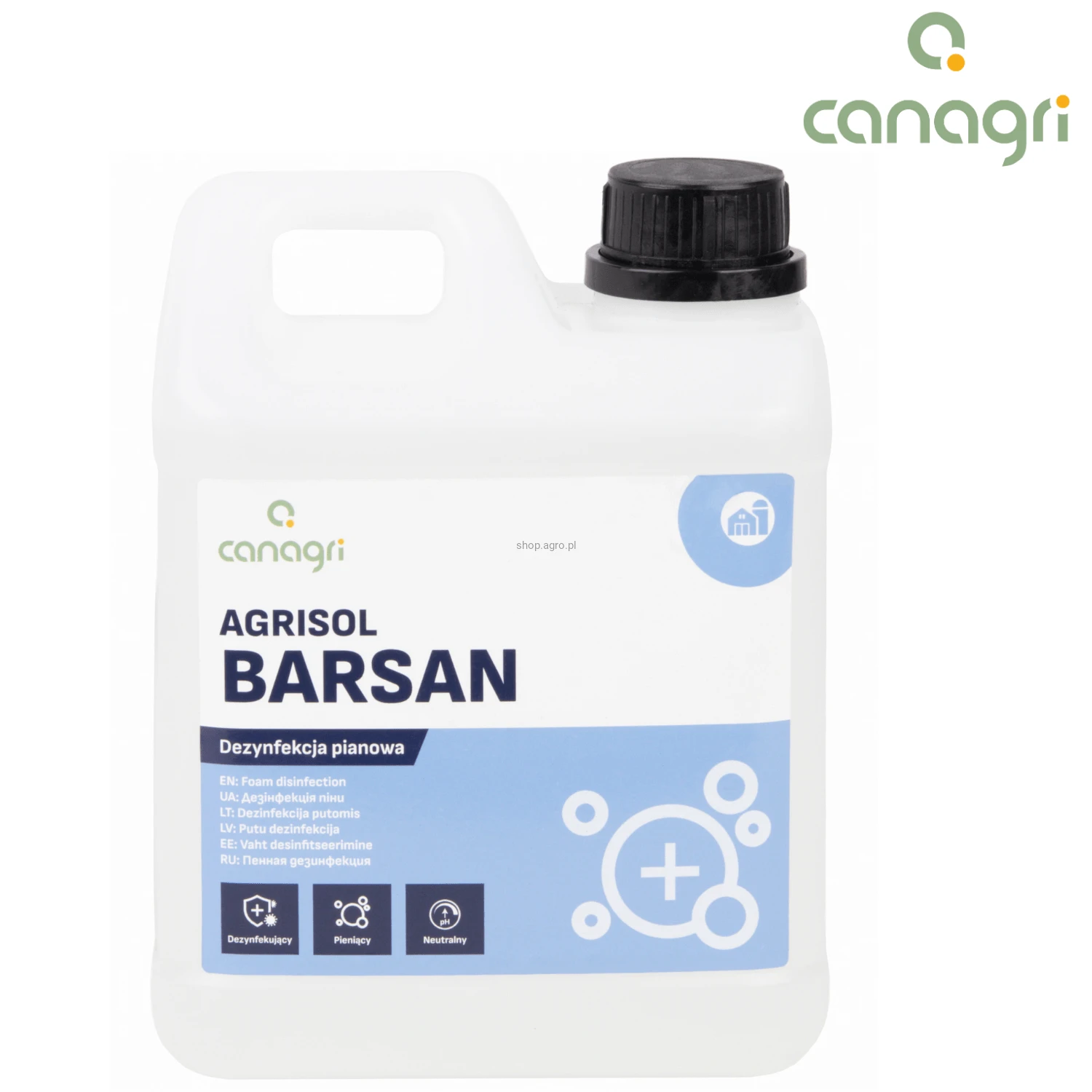 Agrisol Barsan jest piennym, skoncentrowanym opartym o czwartorzędowe związki amoniowe płynem do dezynfekcji. Bardzo skuteczny wobec bakterii, grzybów i pleśni.