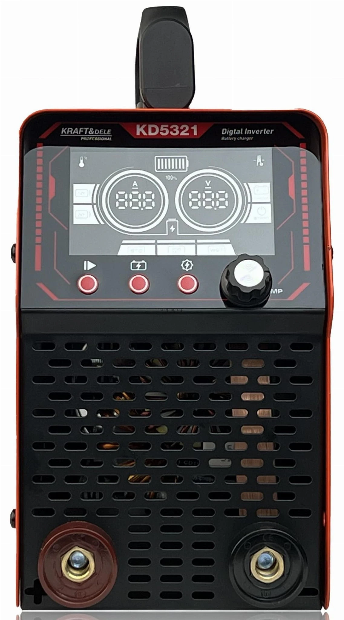 Model KD5321 obsługuje akumulatory o pojemności od 50Ah do 800Ah. Dzięki wysokiemu prądowi startowemu 600A skutecznie wspiera uruchamianie pojazdów w trudnych warunkach. Urządzenie wyposażone jest w rozbudowany system zabezpieczeń chroniących przed odwrotną polaryzacją, przeciążeniem, przegrzaniem, zwarciem oraz przepięciem. Wentylator sterowany temperaturą zapewnia odpowiednie chłodzenie podczas intensywnej pracy.
