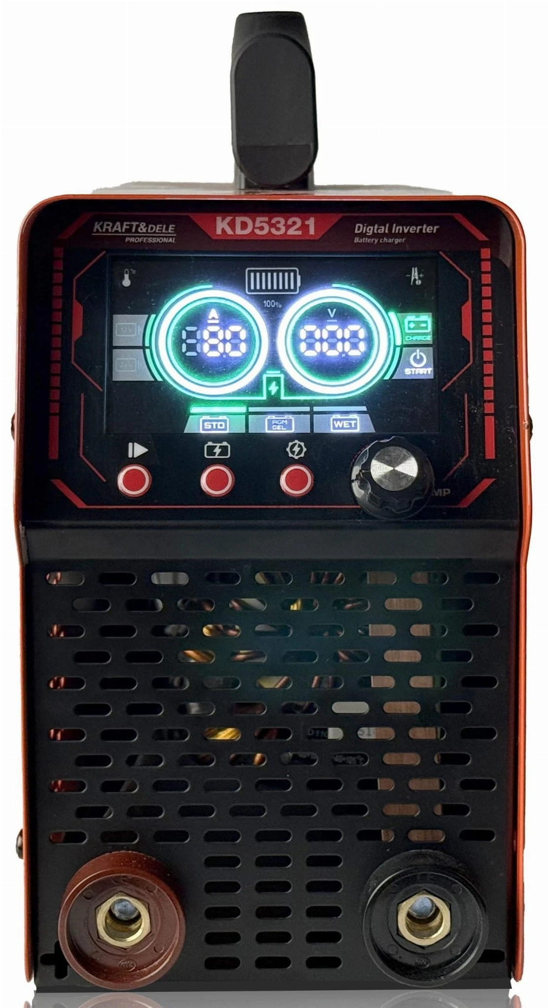 KD5321 marki KRAFT&DELE to nowoczesny prostownik z funkcją rozruchu, przeznaczony do ładowania akumulatorów 12V oraz 24V z autodetekcją napięcia systemu. Urządzenie umożliwia zarówno standardowe ładowanie, jak i wspomaganie rozruchu pojazdów mechanicznych oraz maszyn z silnikami benzynowymi i diesla.