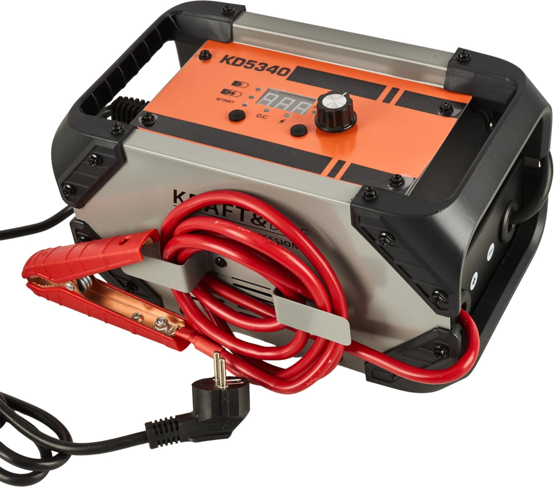 KD5340 to nowoczesna ładowarka samochodowa marki KRAFT&DELE, zaprojektowana do szybkiego i inteligentnego ładowania akumulatorów w pojazdach osobowych, SUV-ach oraz motocyklach. Dzięki zaawansowanej technologii inwerterowej urządzenie pracuje z wydajnością do 90%, zapewniając stabilne i bezpieczne uzupełnianie energii w akumulatorach o pojemności od 20 do 250 Ah.