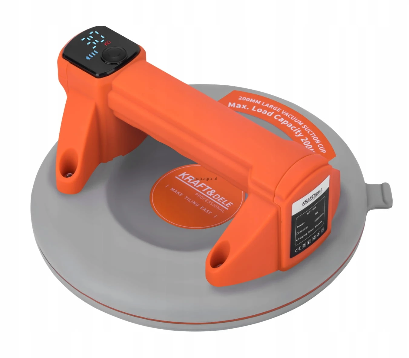 Przyssawka Próżniowa Akumulatorowa Szyb Uchwyt 200mm 200kg LCD Kraft&Dele