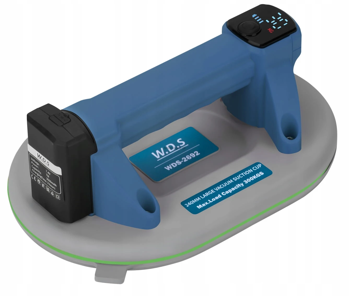 Przyssawka Próżniowa Akumulatorowa Szyb Uchwyt 240 mm 300 Kg LCD W.D.S.