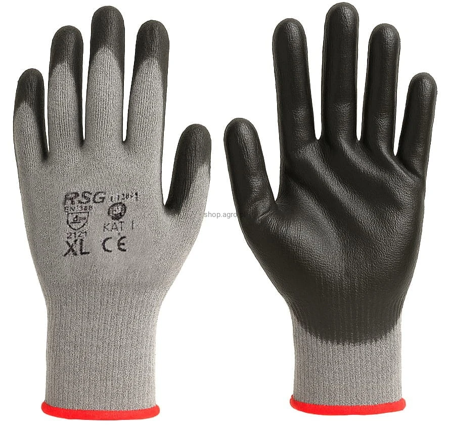 Model RSG-P wykonany jest z wysokiej jakości poliestru powlekanego lateksem o porowatej strukturze, co gwarantuje doskonałą przyczepność oraz pewny chwyt nawet w trudnych warunkach. Elastyczny ściągacz w nadgarstku zapobiega zsuwaniu się rękawic i poprawia komfort pracy.