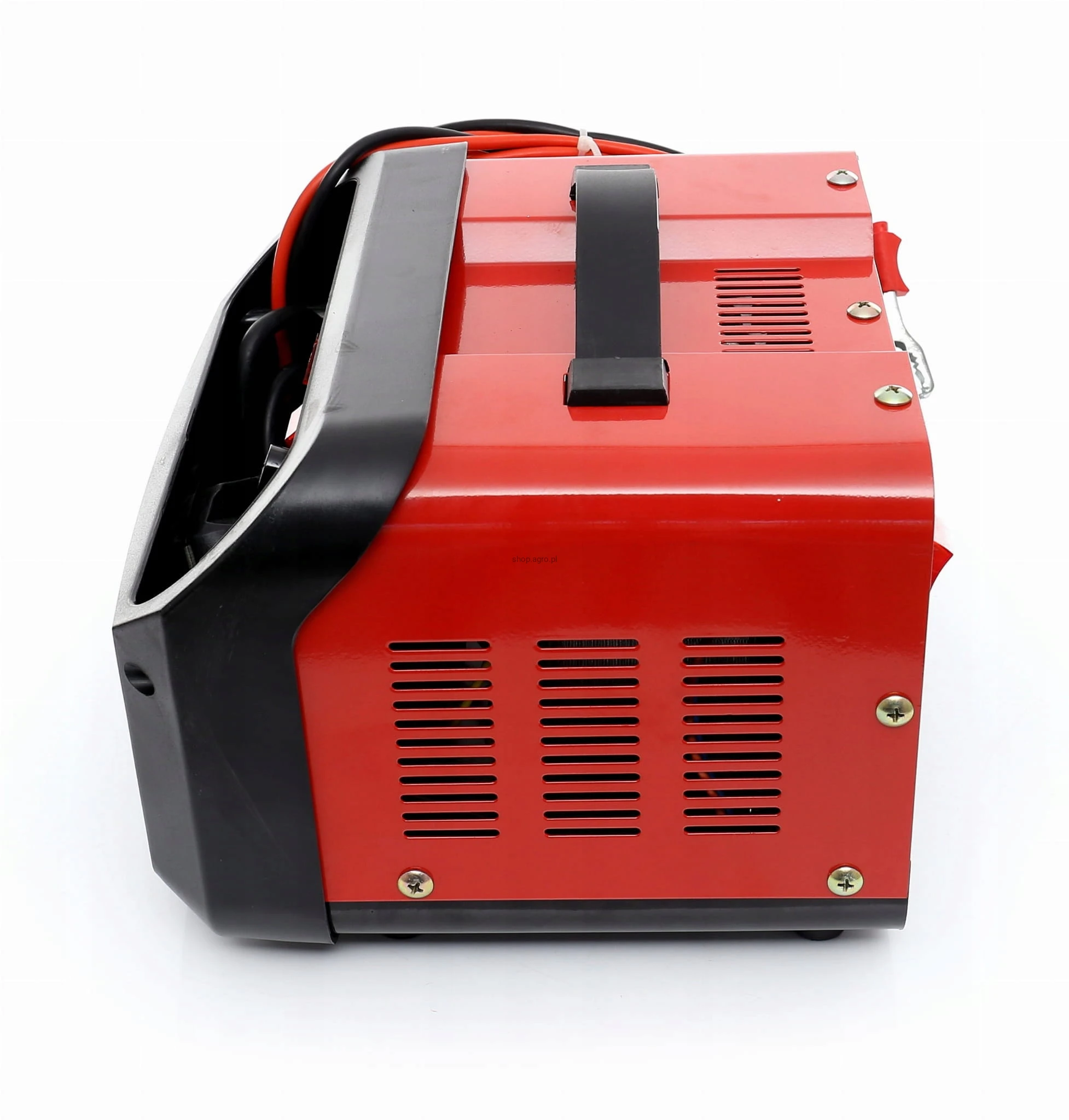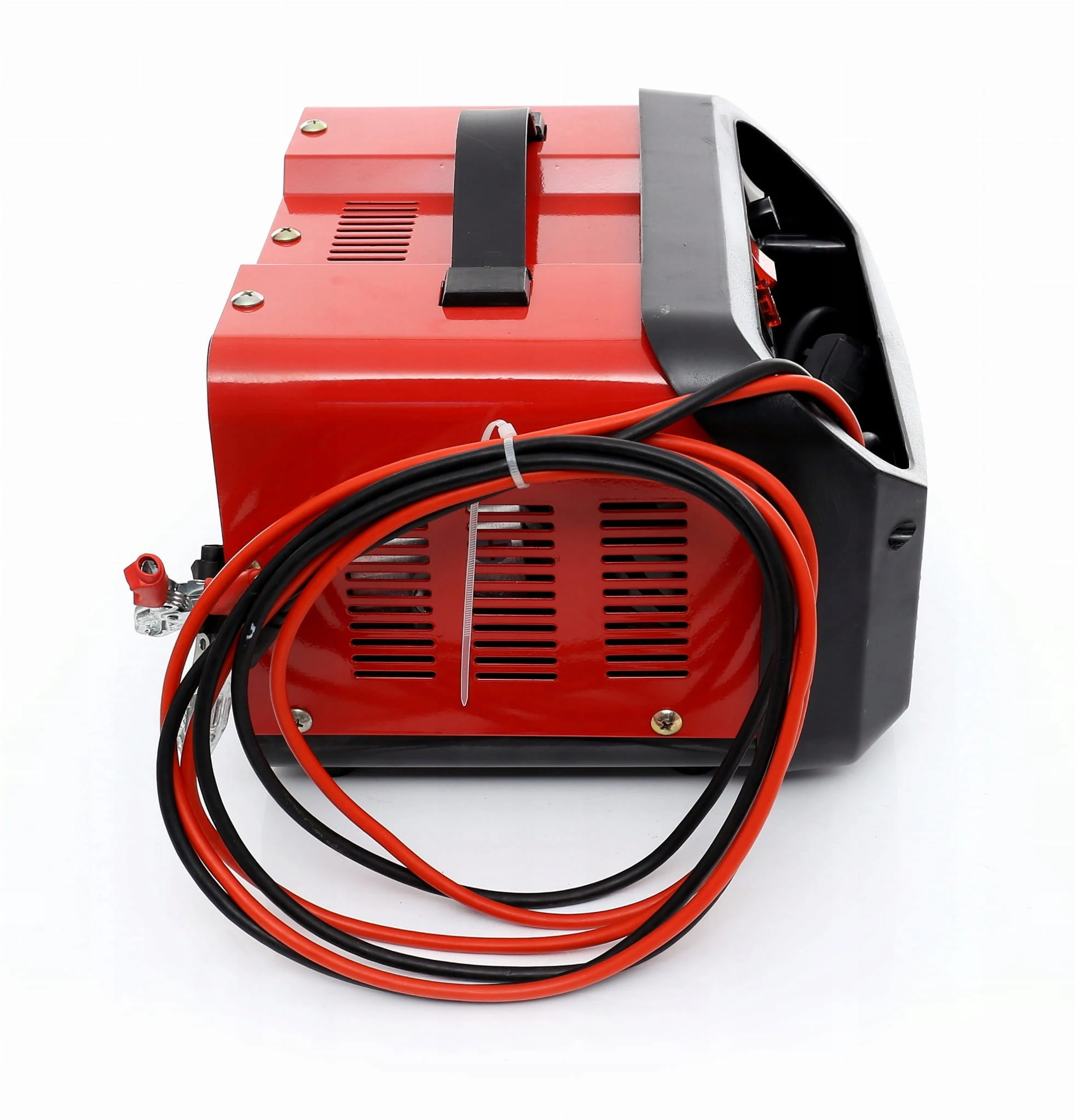 Metalowa obudowa prostownika posiada dużo otworów, dzięki czemu urządzenie jest dobrze wentylowane i chłodzone podczas pracy.