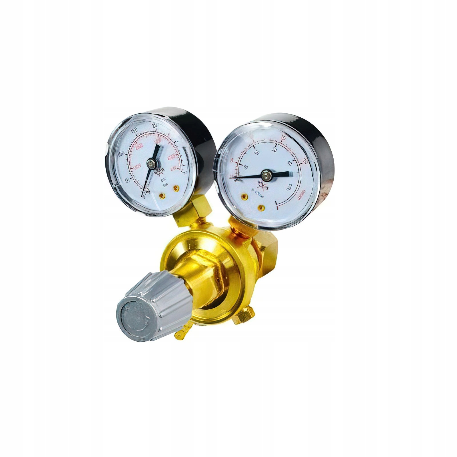 ✨ Wyposażony jest w dwa manometry - pierwszy wskazuje ciśnienie w butli, drugi przepływ gazu na minutę.