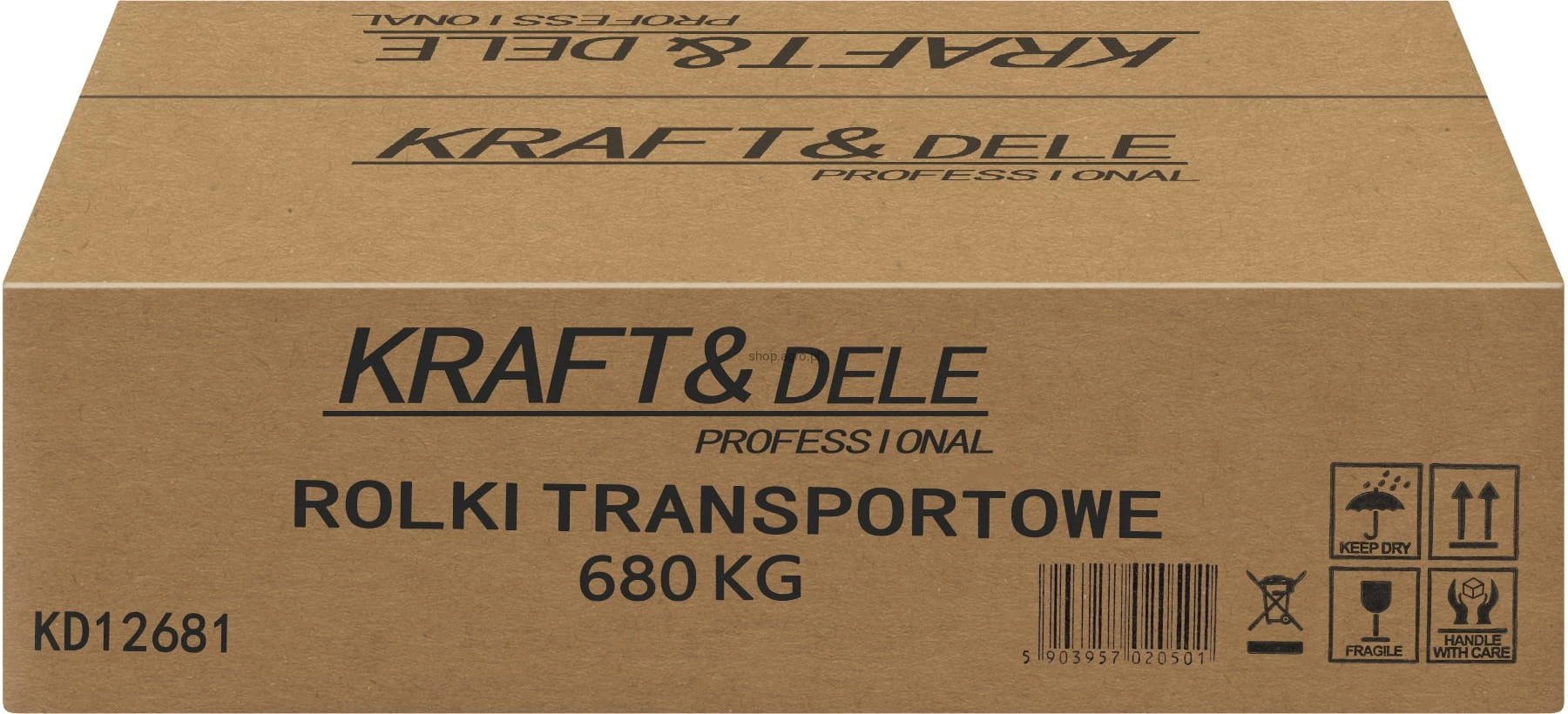 Rolki transportowe KD12681 marki KRAFT&DELE to solidne i wytrzymałe platformy przeznaczone do przemieszczania ciężkich ładunków w warsztatach, magazynach oraz halach produkcyjnych. Zestaw zawiera dwie sztuki (para), co umożliwia stabilne podparcie oraz bezpieczny transport dużych i ciężkich przedmiotów.