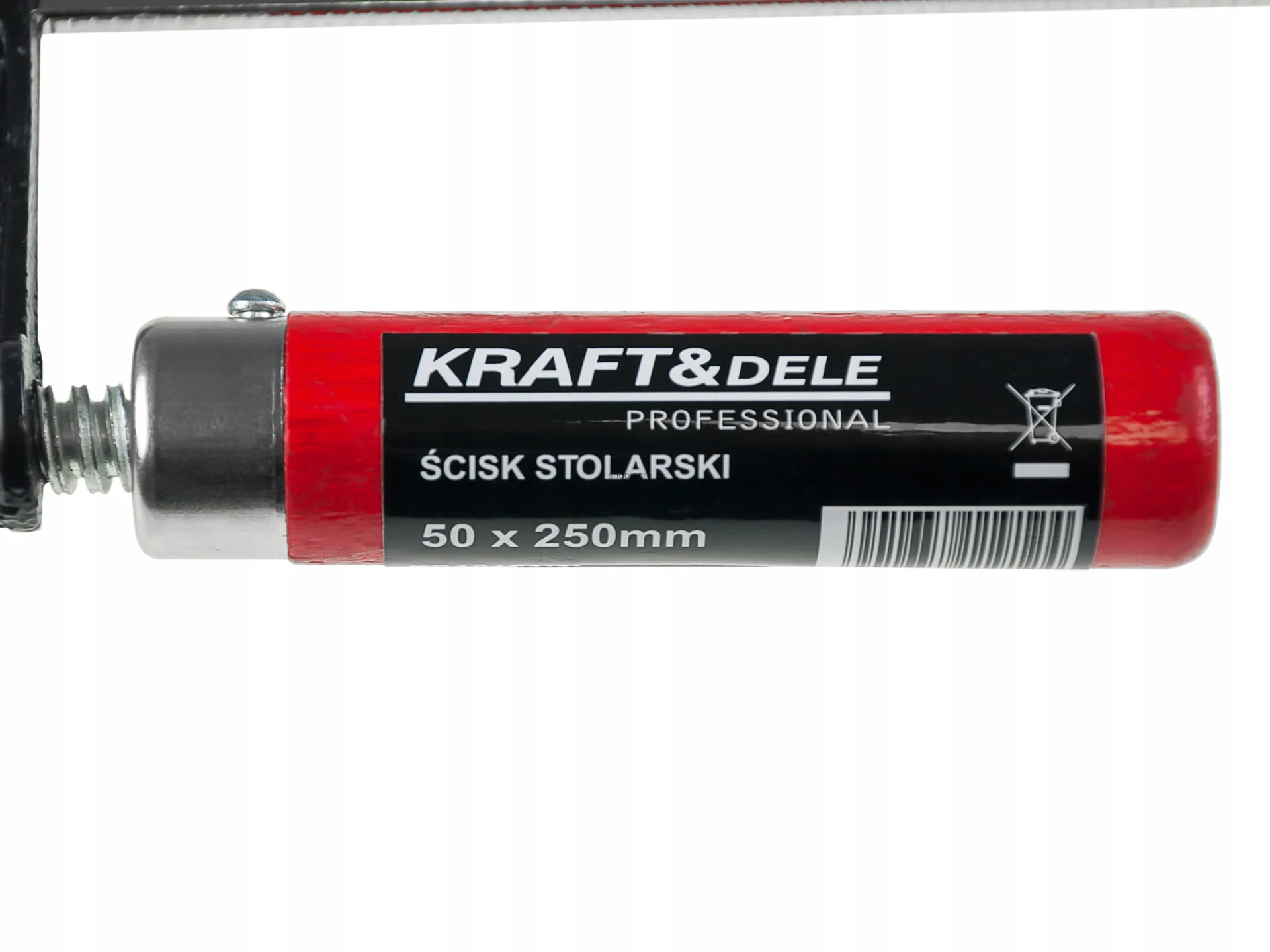 - Ścisk stolarski renomowanej marki Kraft&Dele umożliwia skuteczne mocowanie materiału podczas obróbki (cięcia, wiercenia, spawania itp.).