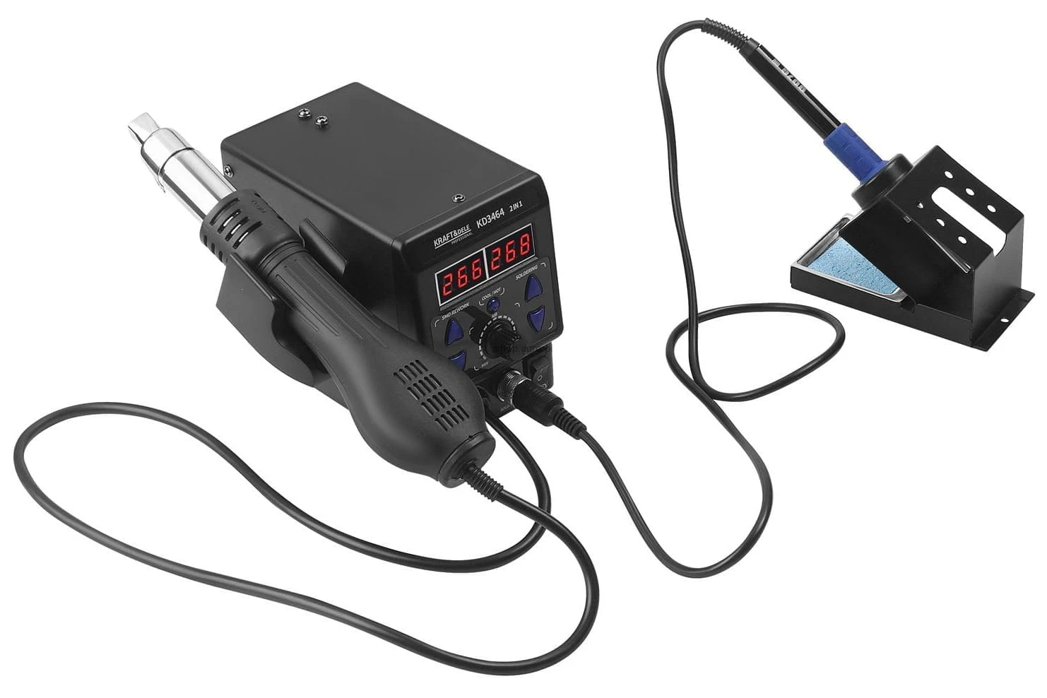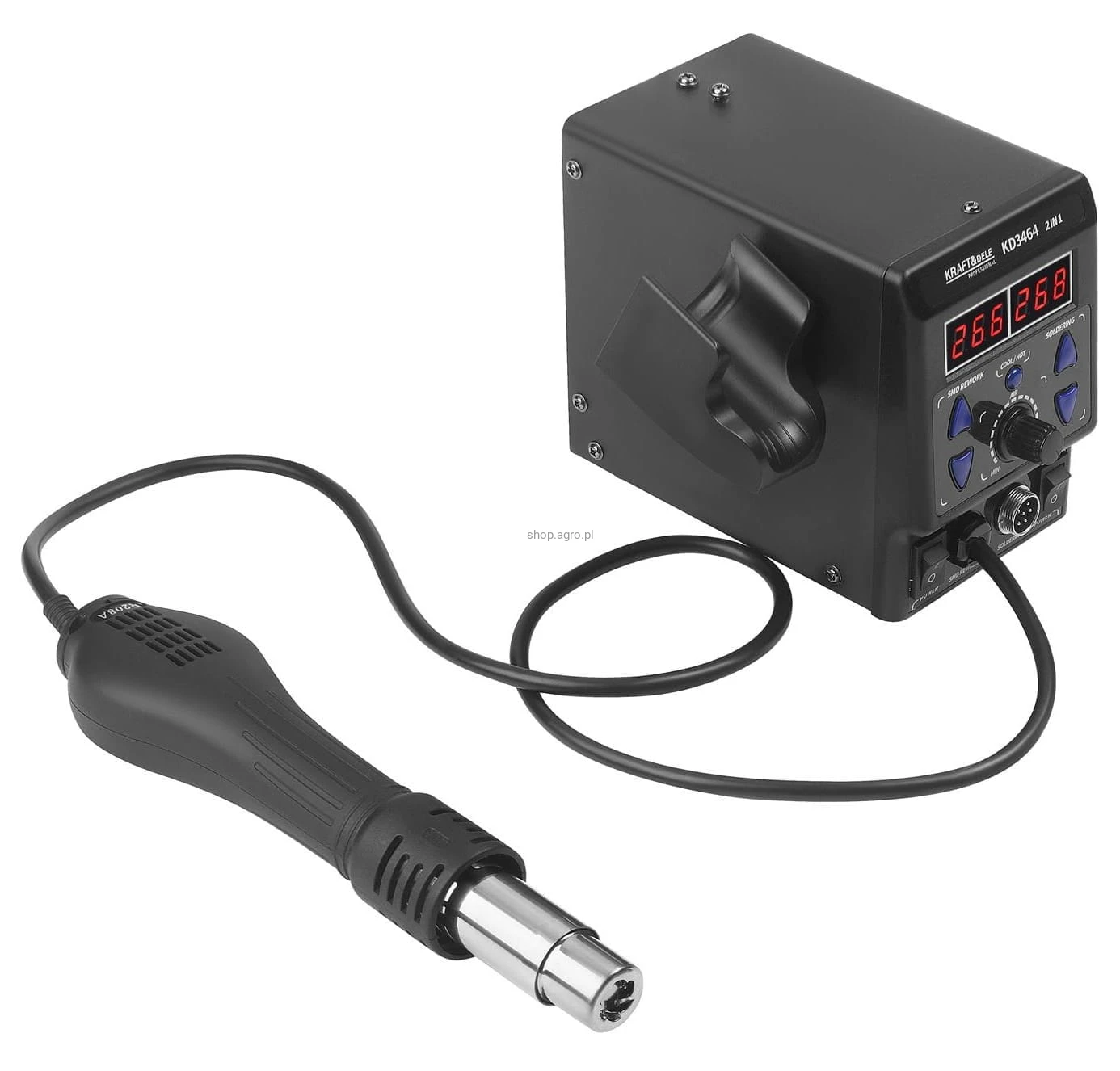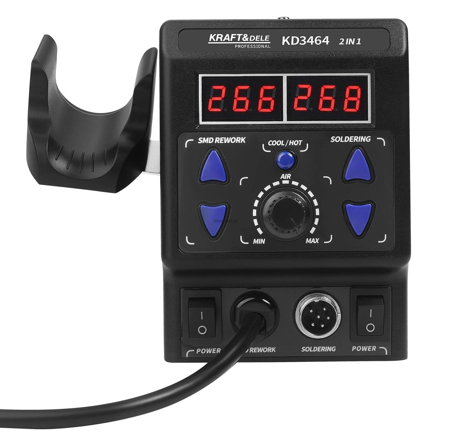 Bezszczotkowa dmuchawa zapewnia delikatny i równomierny przepływ powietrza, a automatyczne wyłączanie chroni urządzenie i zwiększa bezpieczeństwo pracy. KD3464 jest również wyposażona w liczne akcesoria, które ułatwiają lutowanie i spawanie: zamienne groty, nakładki na pistolet powietrza, topnik, strzykawkę, odsysarkę i matę do lutowania, dzięki czemu stacja staje się kompletnym narzędziem warsztatowym.