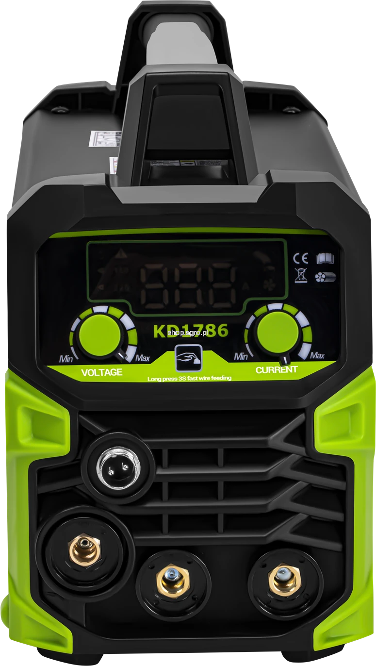 Model KD1786 wyróżnia się stabilną prędkością podawania drutu, energooszczędnością oraz brakiem zakłóceń elektromagnetycznych. Ciągła i stabilna praca przy niskim prądzie sprawia, że urządzenie doskonale nadaje się do spawania cienkich blach ze stali niskowęglowej, stopowej oraz nierdzewnej. Automatyczna kompensacja wahań napięcia, niski poziom odprysków, stabilny łuk spawalniczy oraz wysoki cykl pracy gwarantują komfort i bezpieczeństwo użytkowania, nawet podczas długotrwałej pracy.