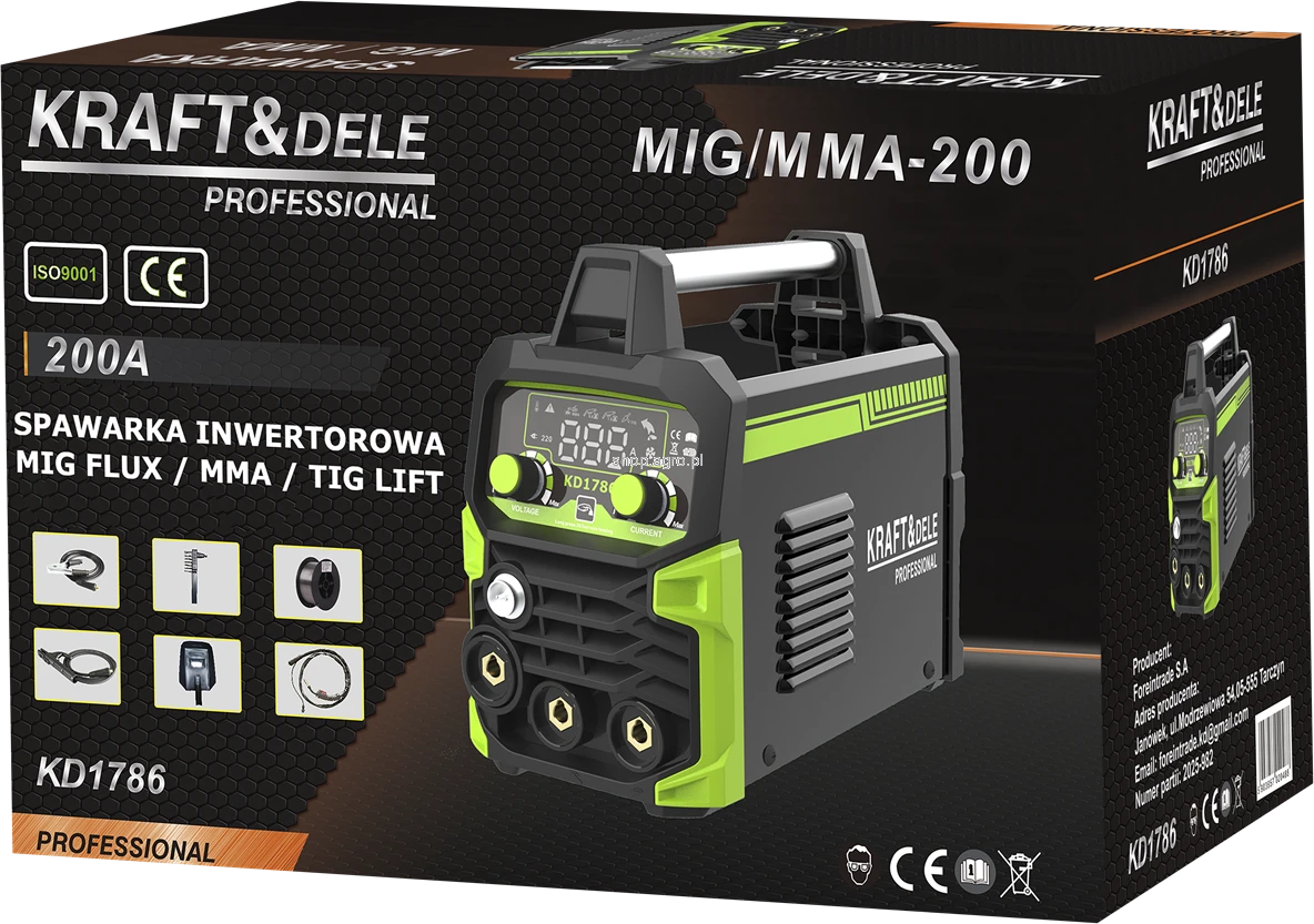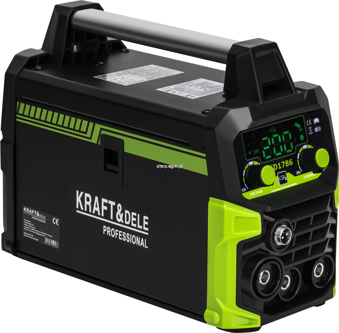 Spawarka inwertorowa; spawarka MIG MMA TIG; spawarka 200A; spawarka MIG FLUX; spawarka IGBT; spawarka do warsztatu; spawarka KRAFT&DELE KD1786;