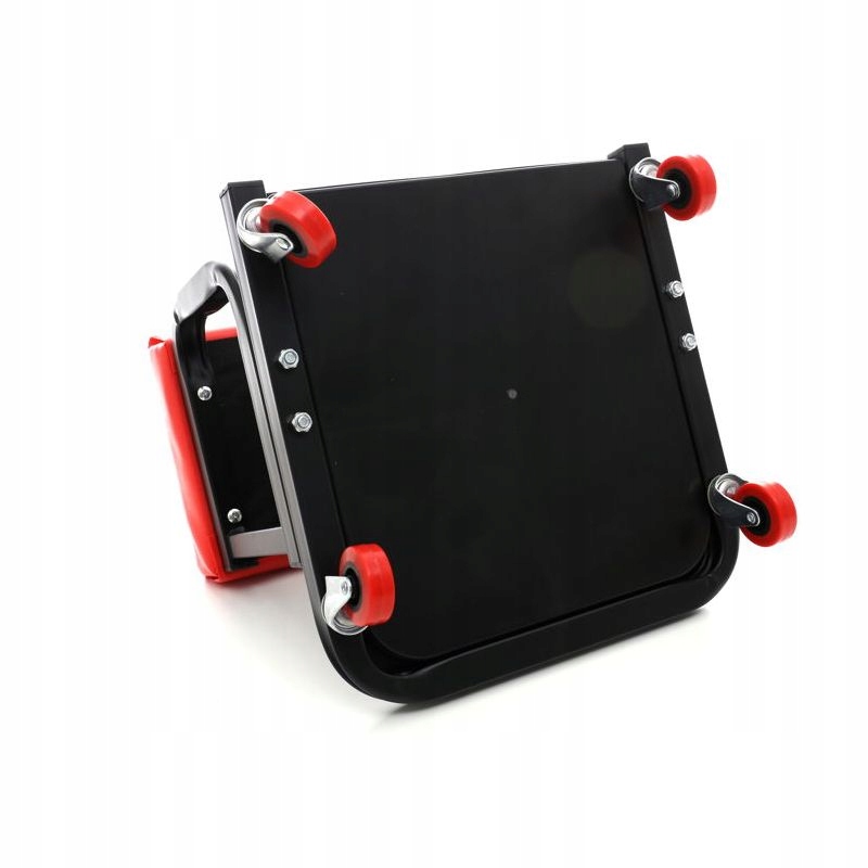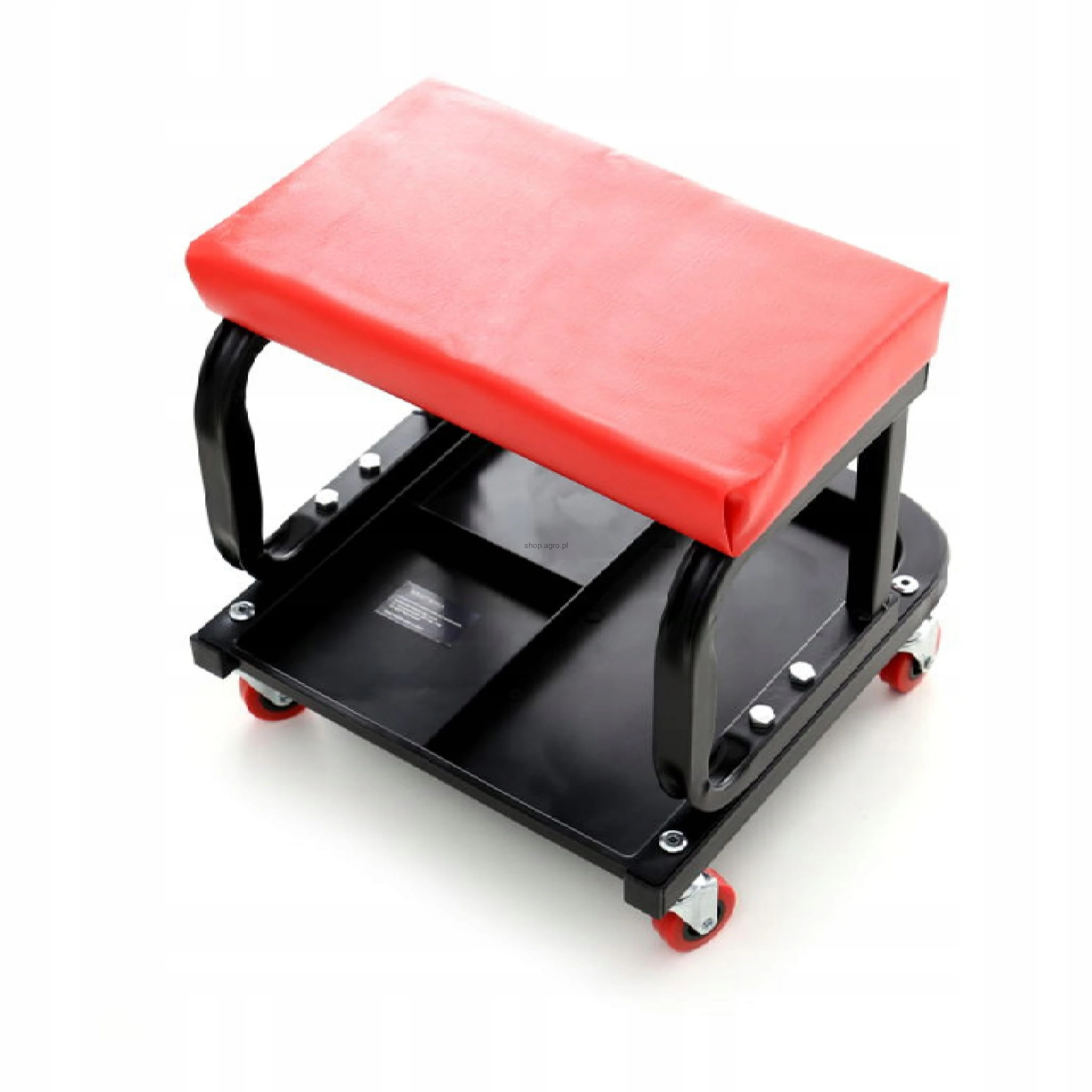 - Dla poprawy komfortu użytkowania krzesełko wyposażone jest w półkę na narzędzia, klucze, śruby, których używamy przy pracy. Nie martw się narzędziami leżącymi na ziemii!