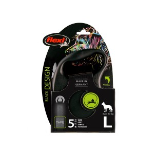 Smycz dla psa Flexi Black Design, taśma, srebrna, roz. L, 5 m, 50 kg
