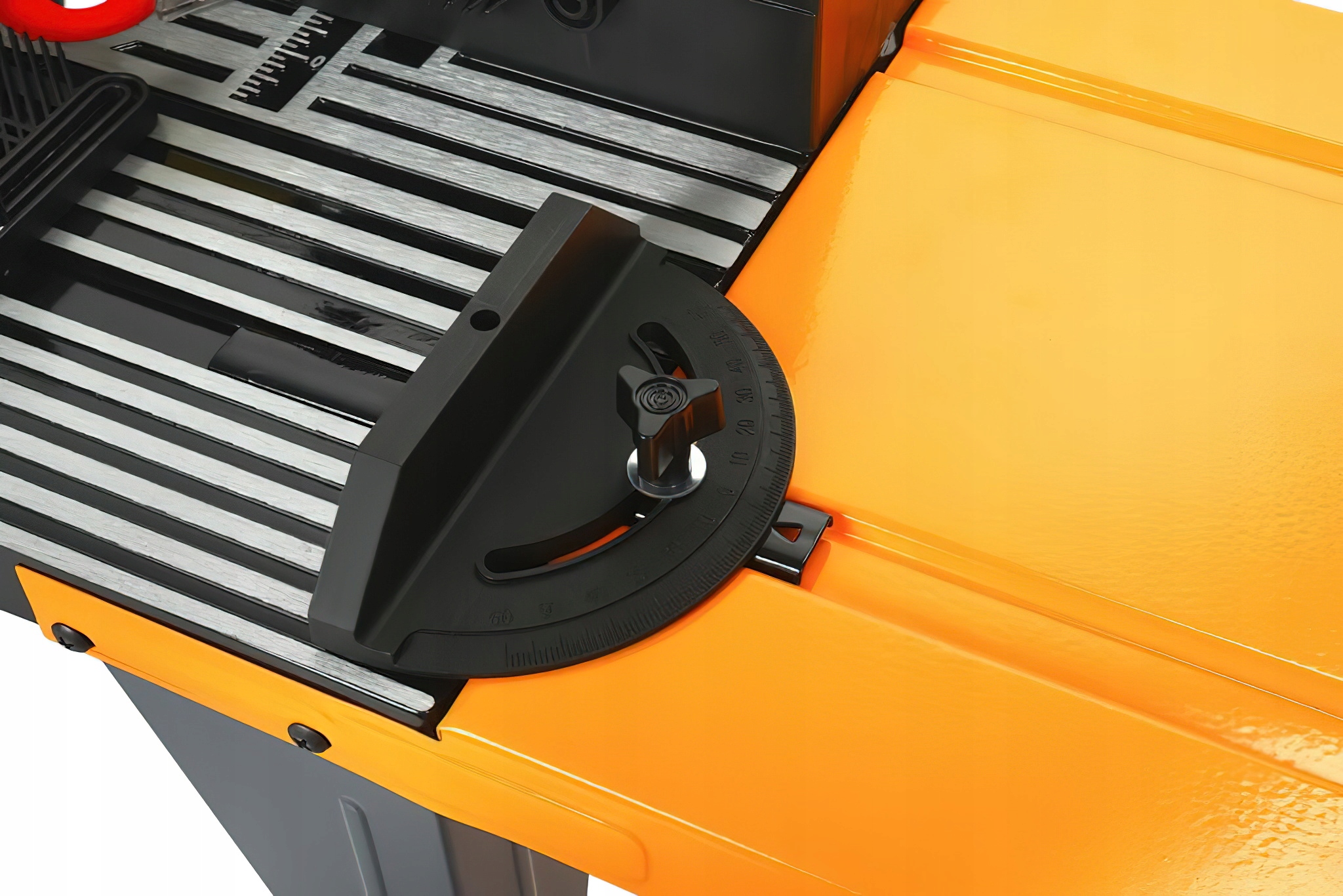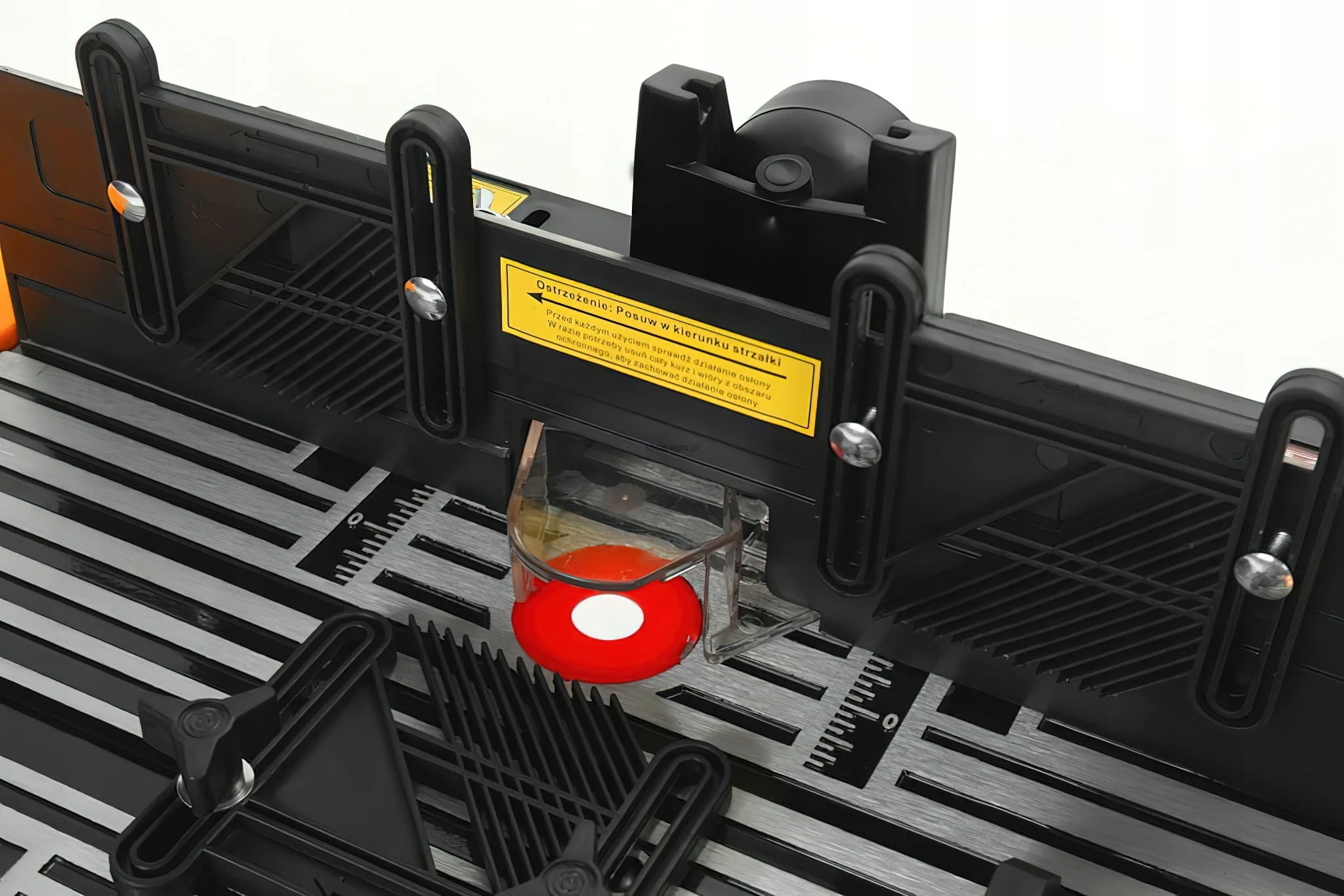 ✖️ Ogranicznik kątowy przesuwany po blacie roboczym, umożliwia on najazd materiału pod zadanym kątem