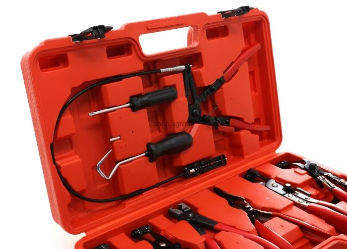Cały zestaw zapakowany w solidną walizkę, gdzie każde narzędzie ma swoje miejsce, pozwalając utrzymać porządek w warsztacie.