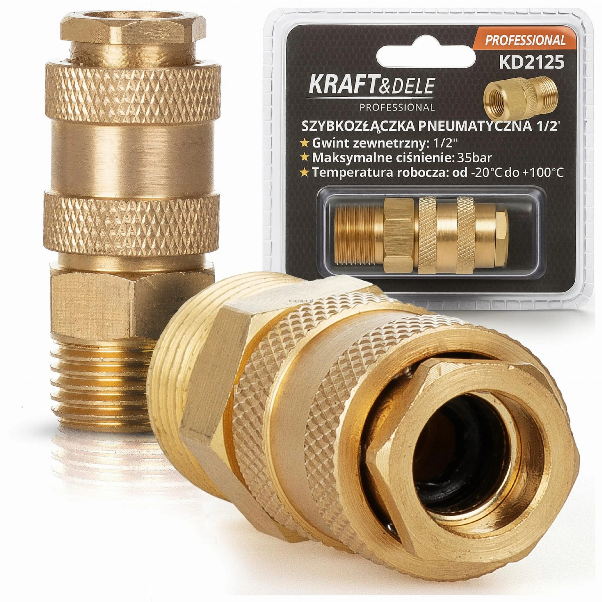 Szybkozłączka Mosiądz Pneumatyczna Gwint 1/2"" Max 35 bar Kraft&Dele