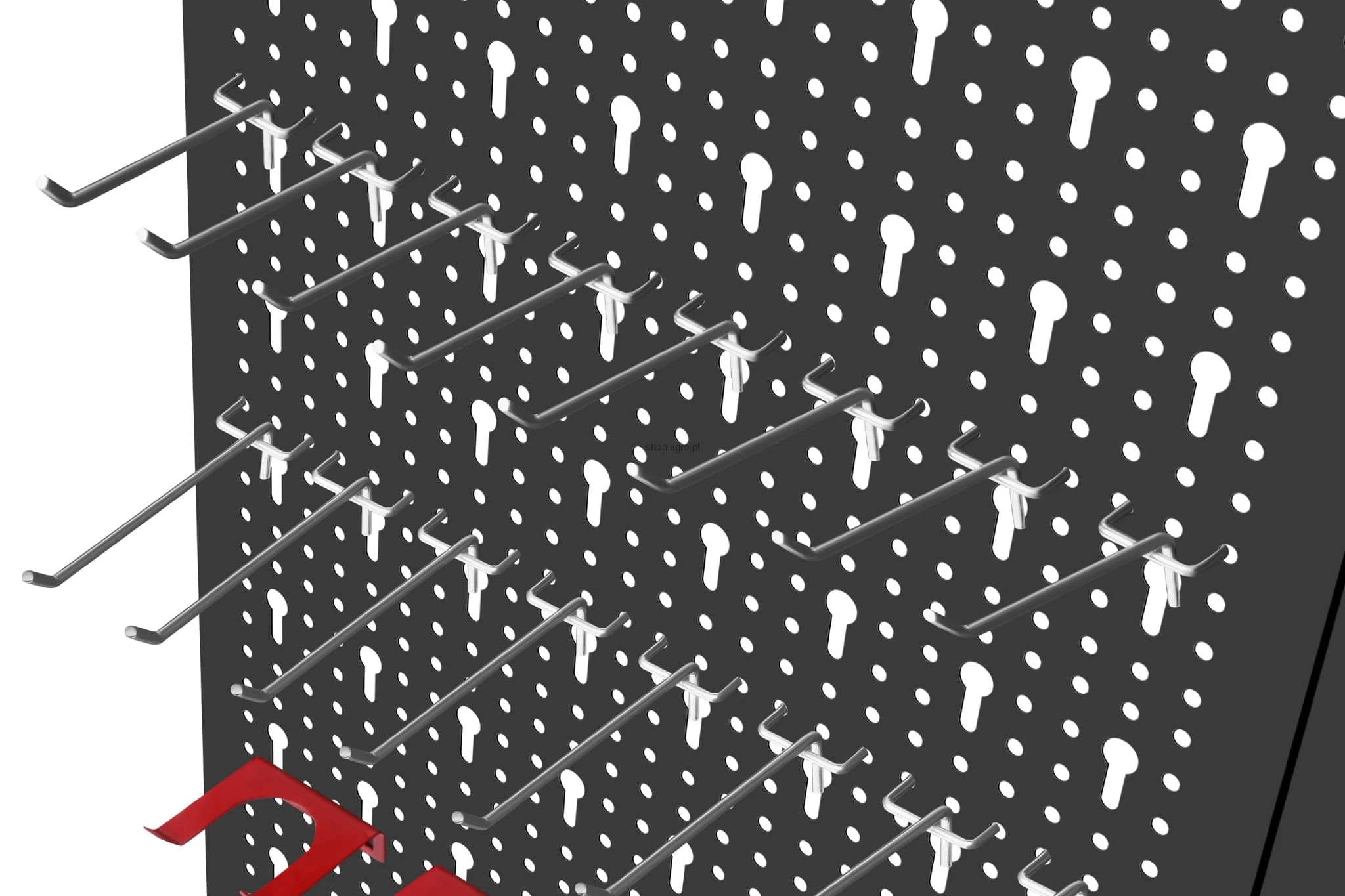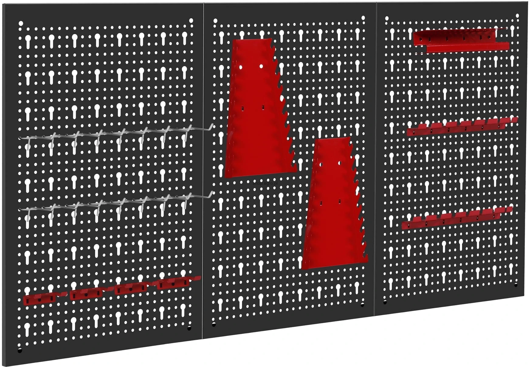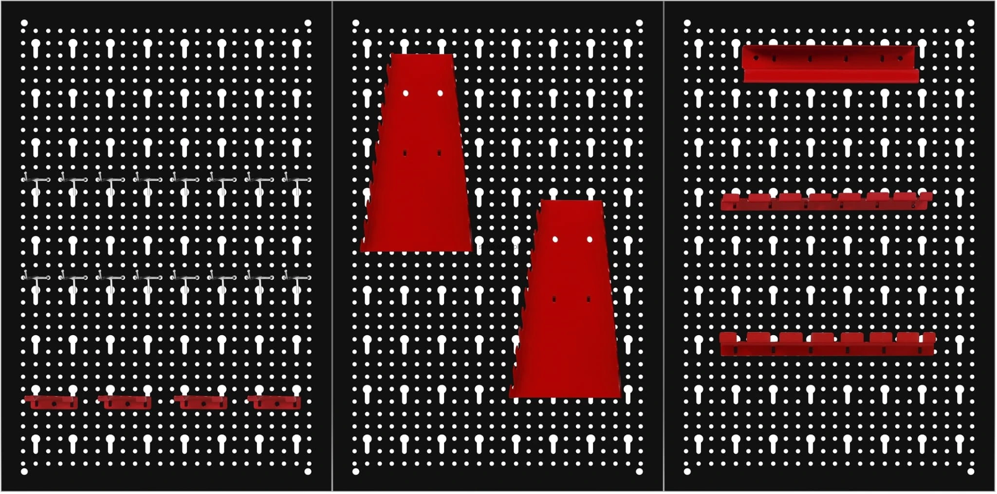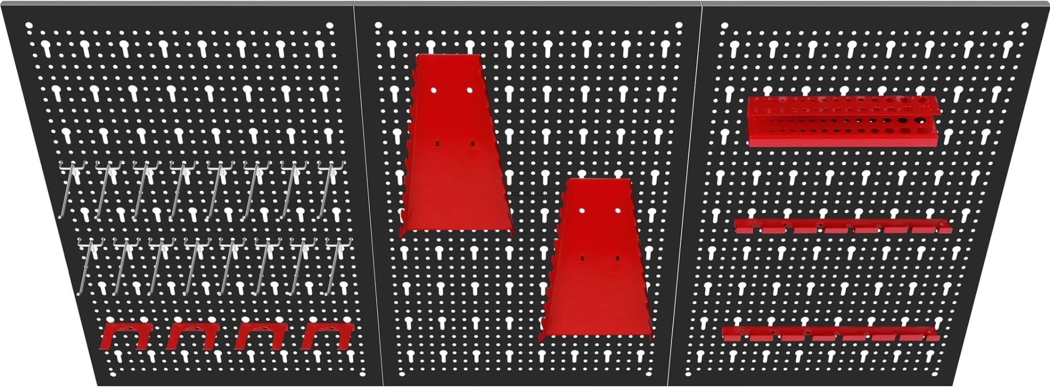 ✅ Trzyczęściowa ściana perforowana z 25 hakami i wspornikami