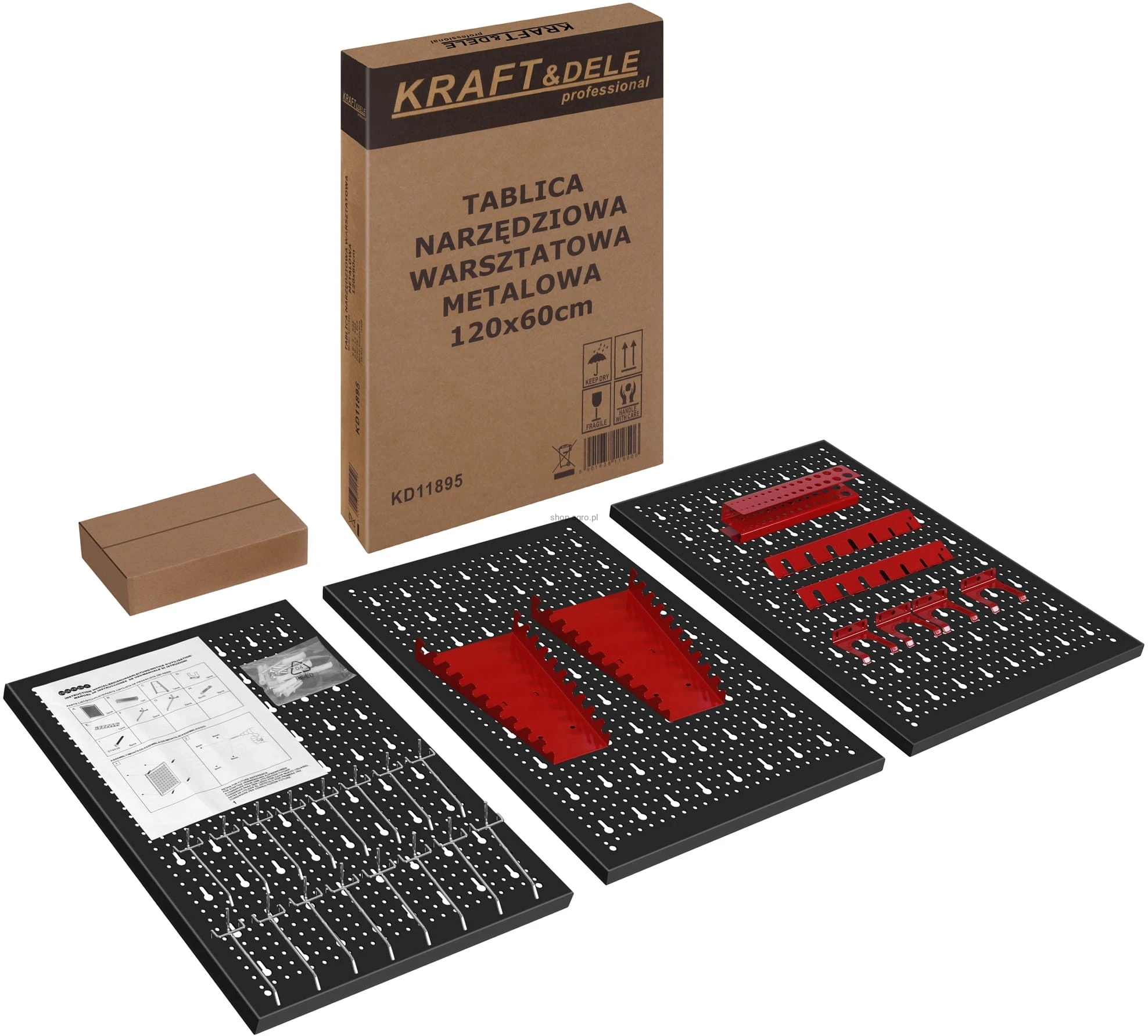 Tablica warsztatowa KRAFT&DELE KD11895 to praktyczne i solidne rozwiązanie do organizacji narzędzi w warsztacie, garażu, serwisie czy przydomowej pracowni. Trzyczęściowa ściana perforowana pozwala na uporządkowane i wygodne przechowywanie najczęściej używanych akcesoriów, zwiększając efektywność oraz komfort pracy.