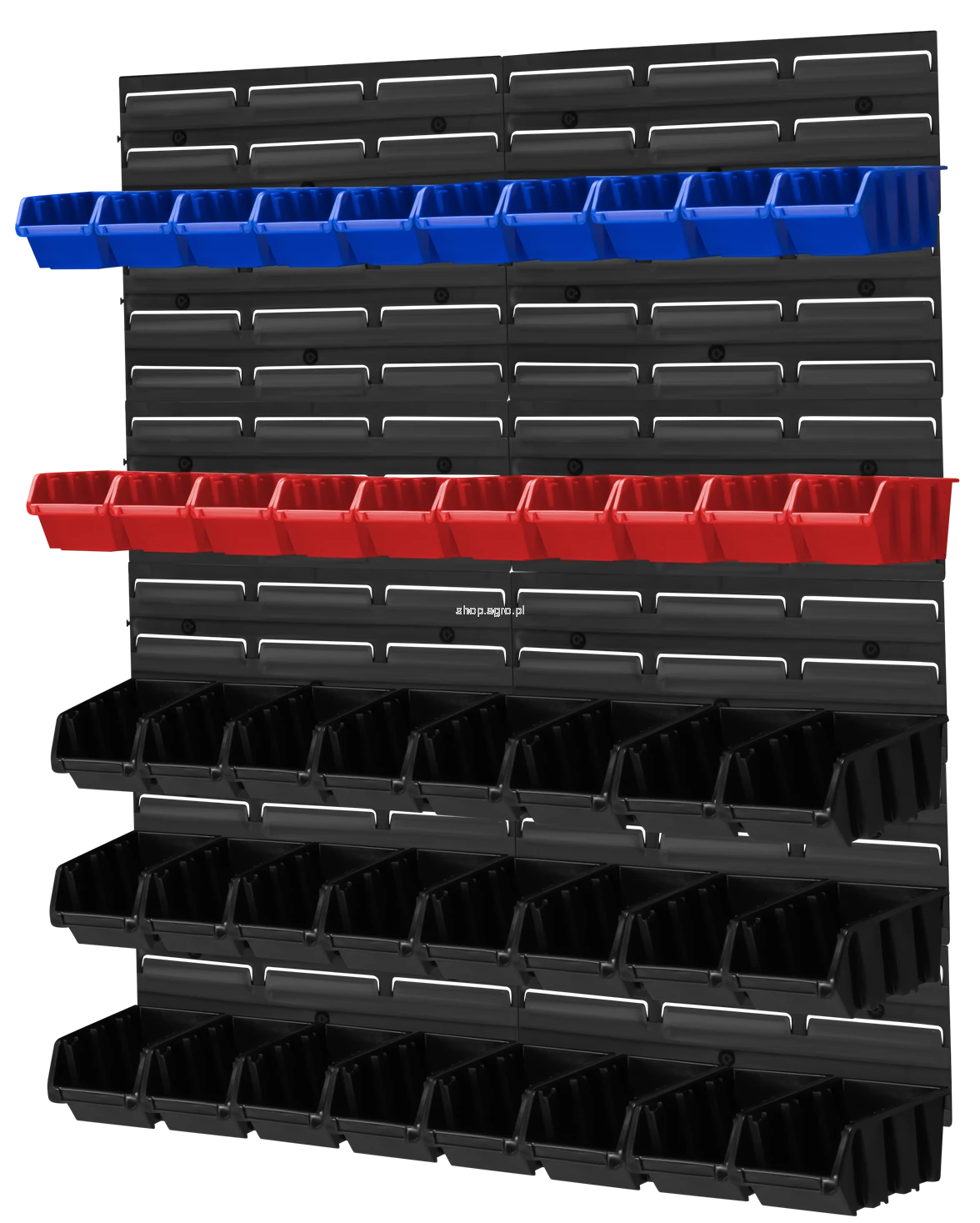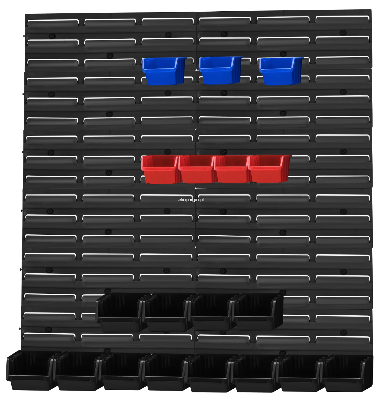 ✅ 12 płyt tylnych umożliwiających stabilne zamocowanie pojemników