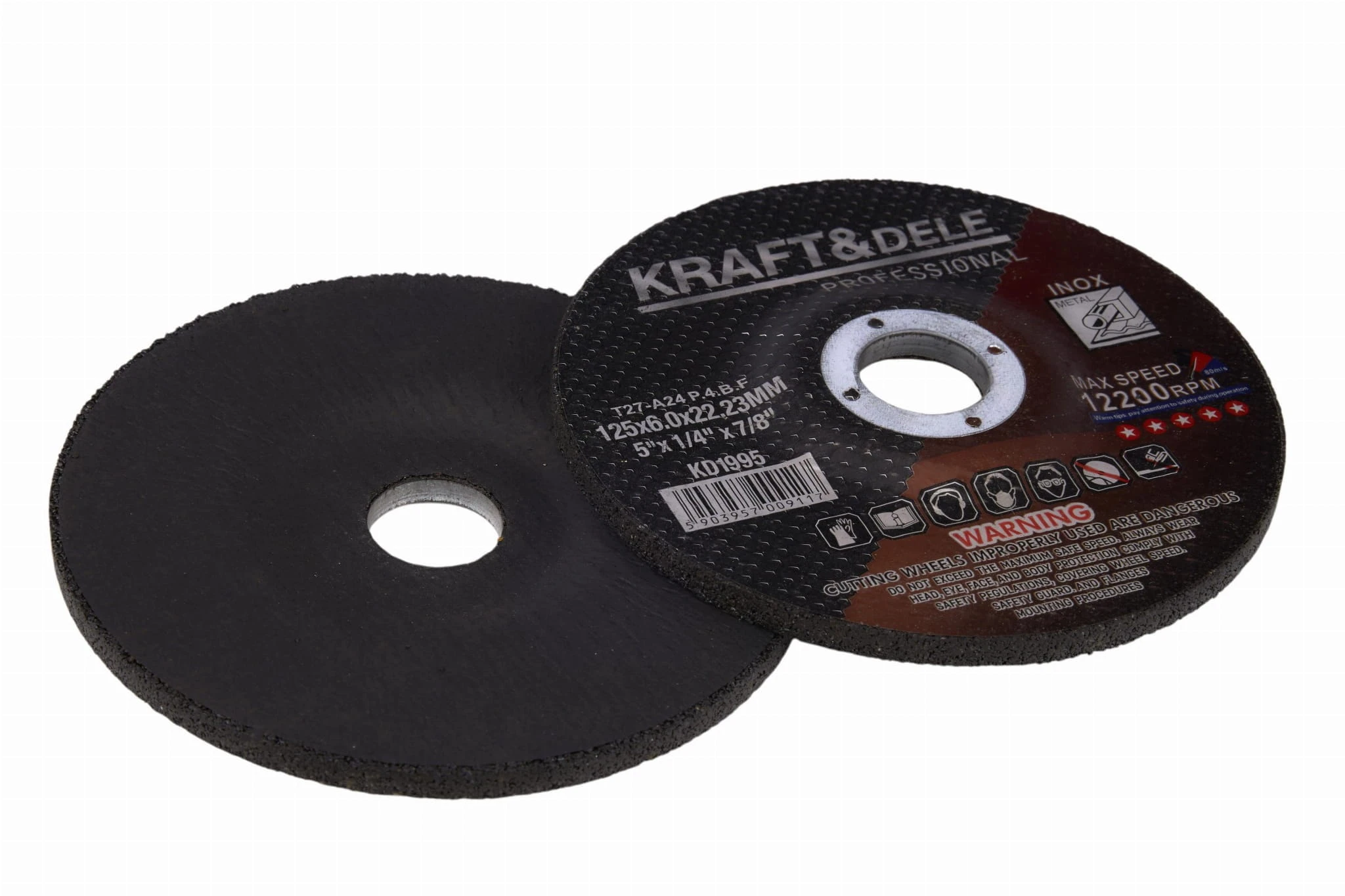 Profesjonalne tarcze tnące marki Kraft&Dele, służą do cięcia za pomocą szlifierki kątowej przedmiotów z metalu. Posiadają ścierniwo wiązane żywicą syntetyczną i wzmocnione tkaniną z włókna szklanego.