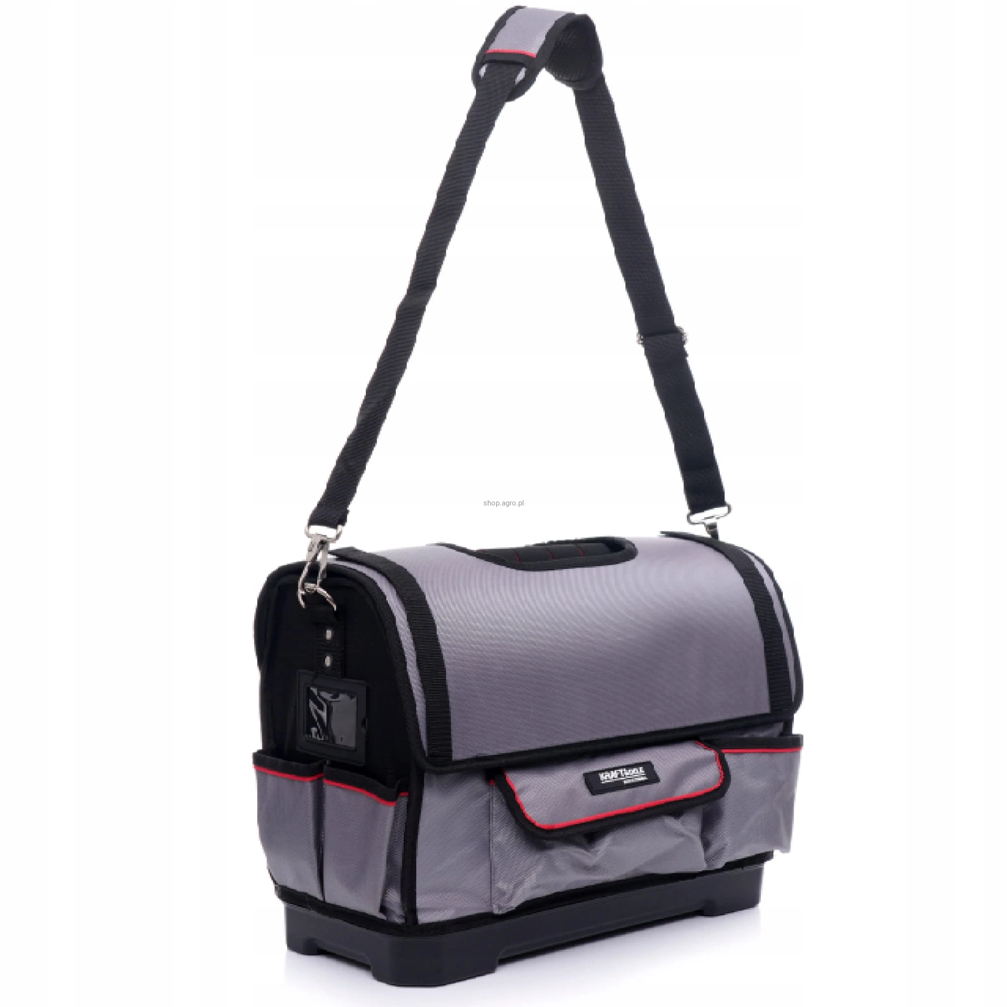 - Sztywne dno pokryte kompozytowym tworzywem zapewnia trwałość, a wiele kieszeni porządek oraz szybki dostęp do potrzebnych narzędzi.