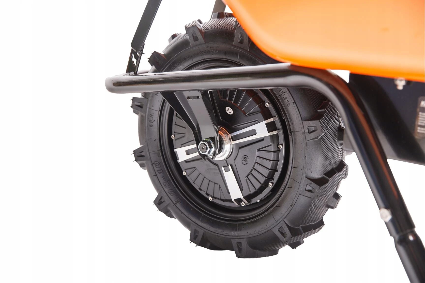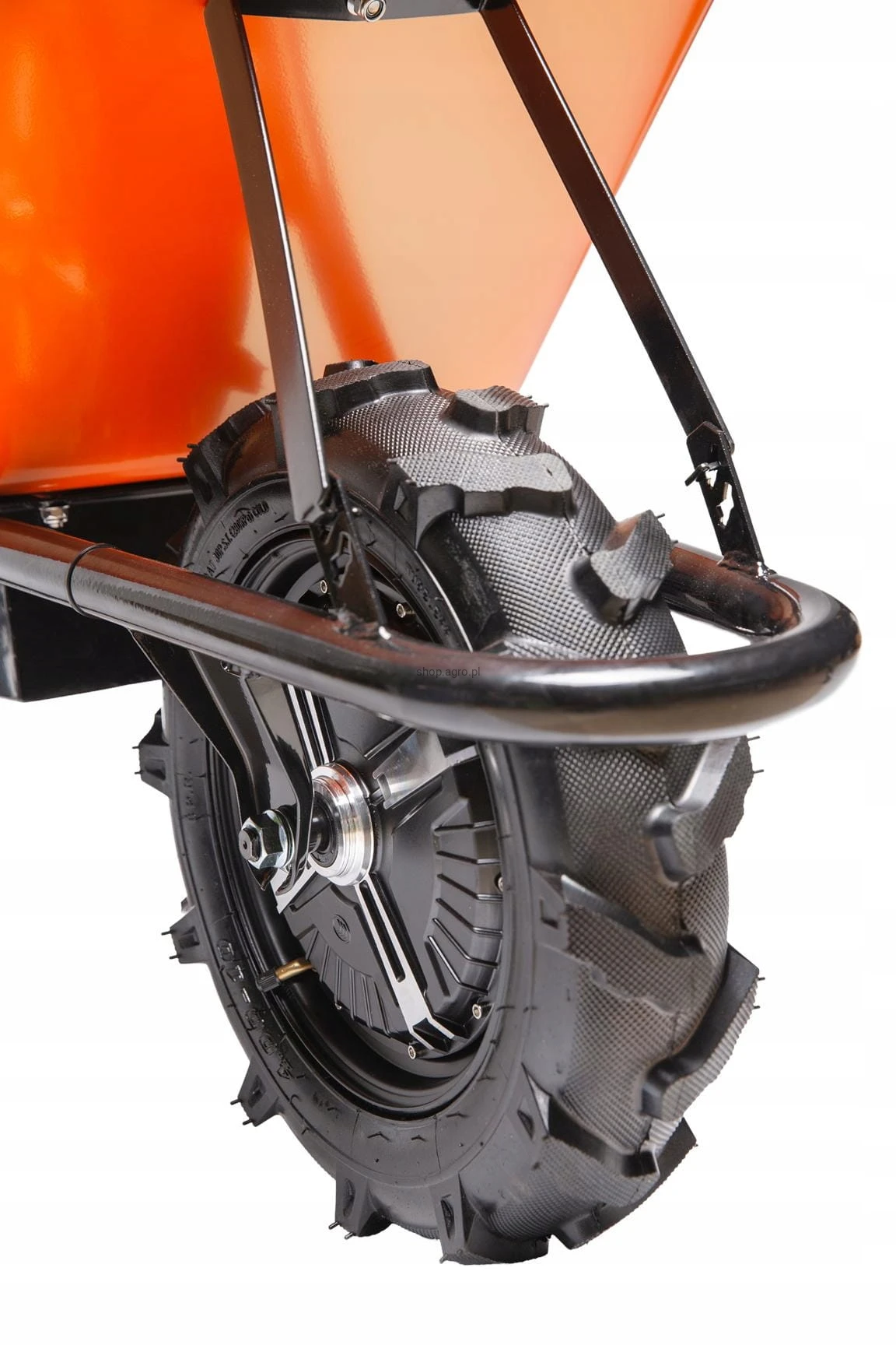 ✴️ Taczka akumulatorowa Kraft&Dele wyposażona jest w duże terenowe koło o średnicy 410 mm, które zapewnia wysoką stabilność i przyczepność na trudnym, nierównym terenie.