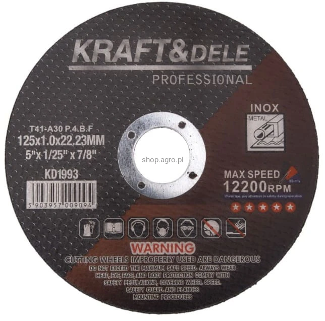 Tarcz tnące do metalu KD1993 marki Kraft&Dele to praktyczne i wydajne akcesorium do szlifierki kątowej, które wyposażysz w warsztacie każdego majsterkowicza i profesjonalisty. Dzięki kompaktowej średnicy 125 mm oraz standardowemu otworowi 22,23 mm tarcze są kompatybilne z większością szlifierek kątowych dostępnych na rynku, zapewniając szybkie i precyzyjne cięcie elementów metalowych.