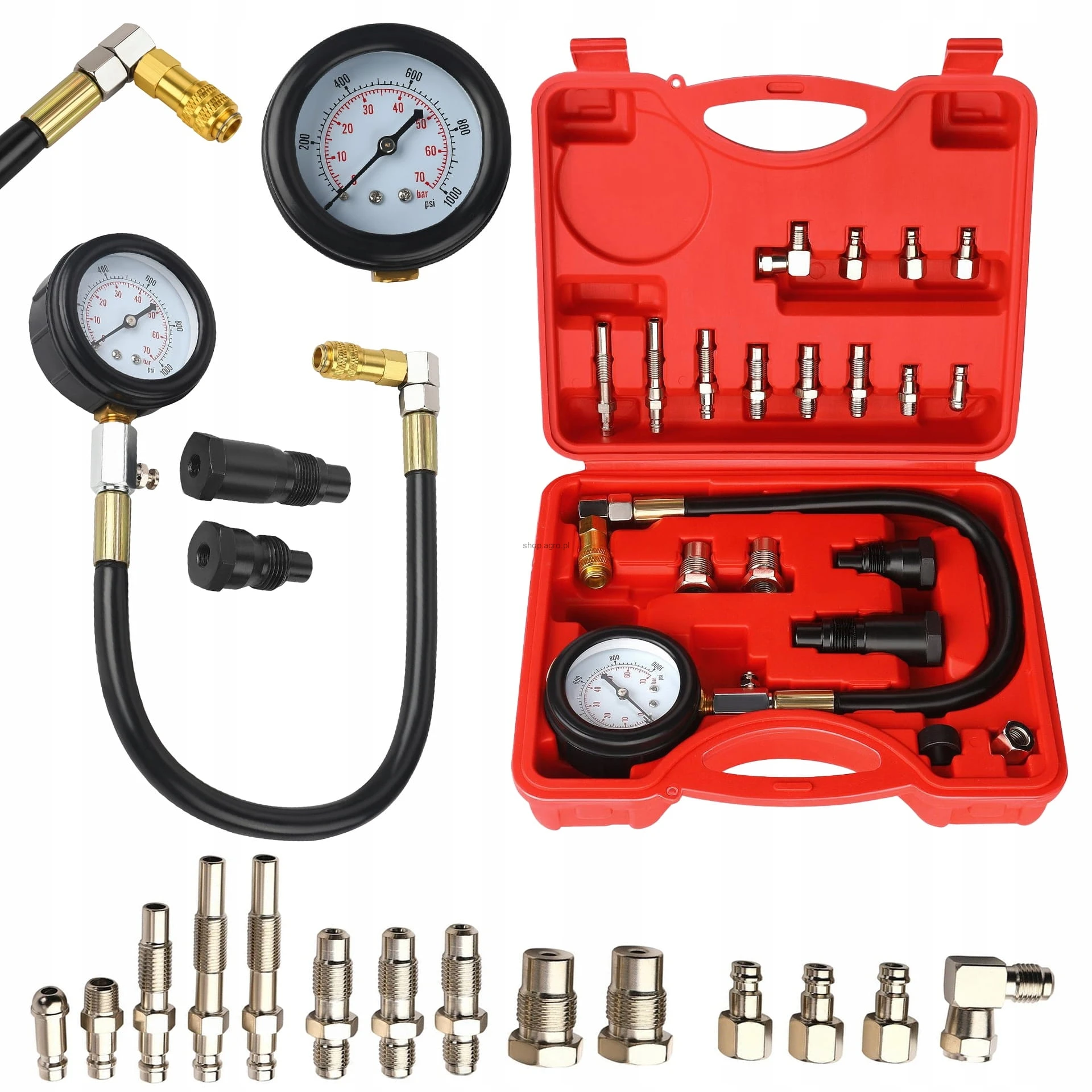 ✴️ Urządzenie mierzy ciśnienie do 70 BAR (1000 PSI), co pozwala na dokładną ocenę sprawności cylindrów i układu tłokowo-zaworowego.