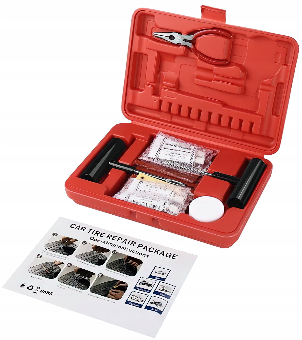 ☑️ wchodzą wszystkie niezbędne akcesoria, które umożliwiają łatwe załatanie dziur, powstałych w wyniku przebicia, co czyni go niezastąpionym narzędziem podczas podróży czy w sytuacjach awaryjnych. Idealny zarówno dla amatorów, jak i profesjonalistów, zestaw zapewnia mobilność oraz niezależność, minimalizując przestoje i koszty związane z naprawą opon.
