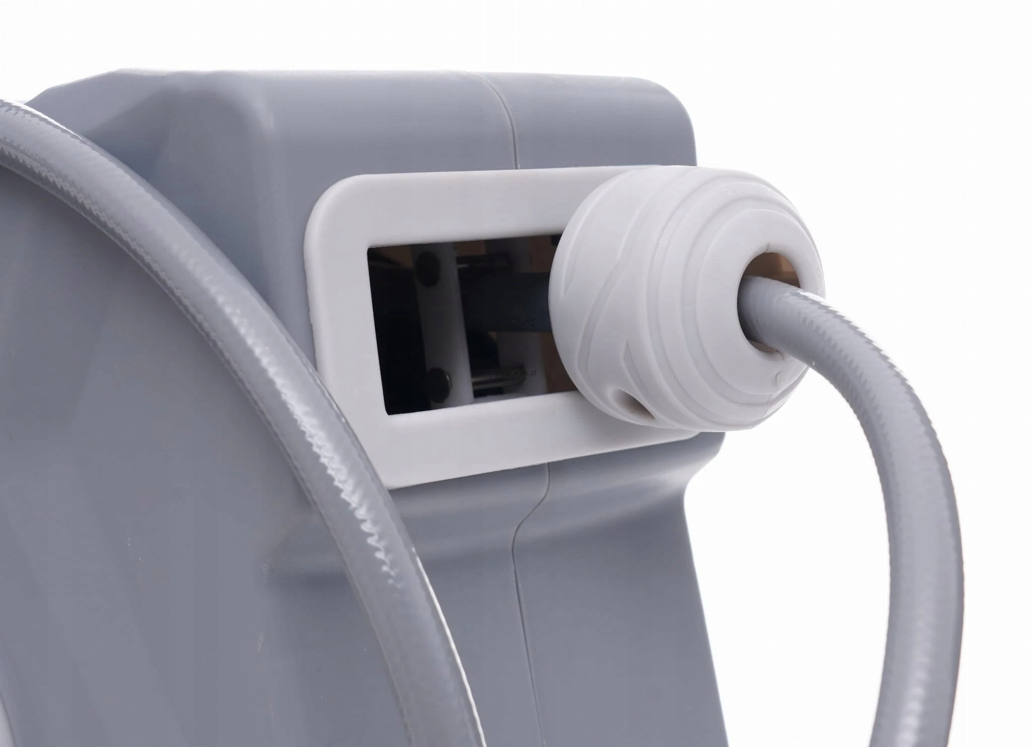 ⭐ Urządzenie bez problemu i w sposób stabilny zamontujesz na ścianie budynku - zwijacz posiada mocowania na uchwycie.