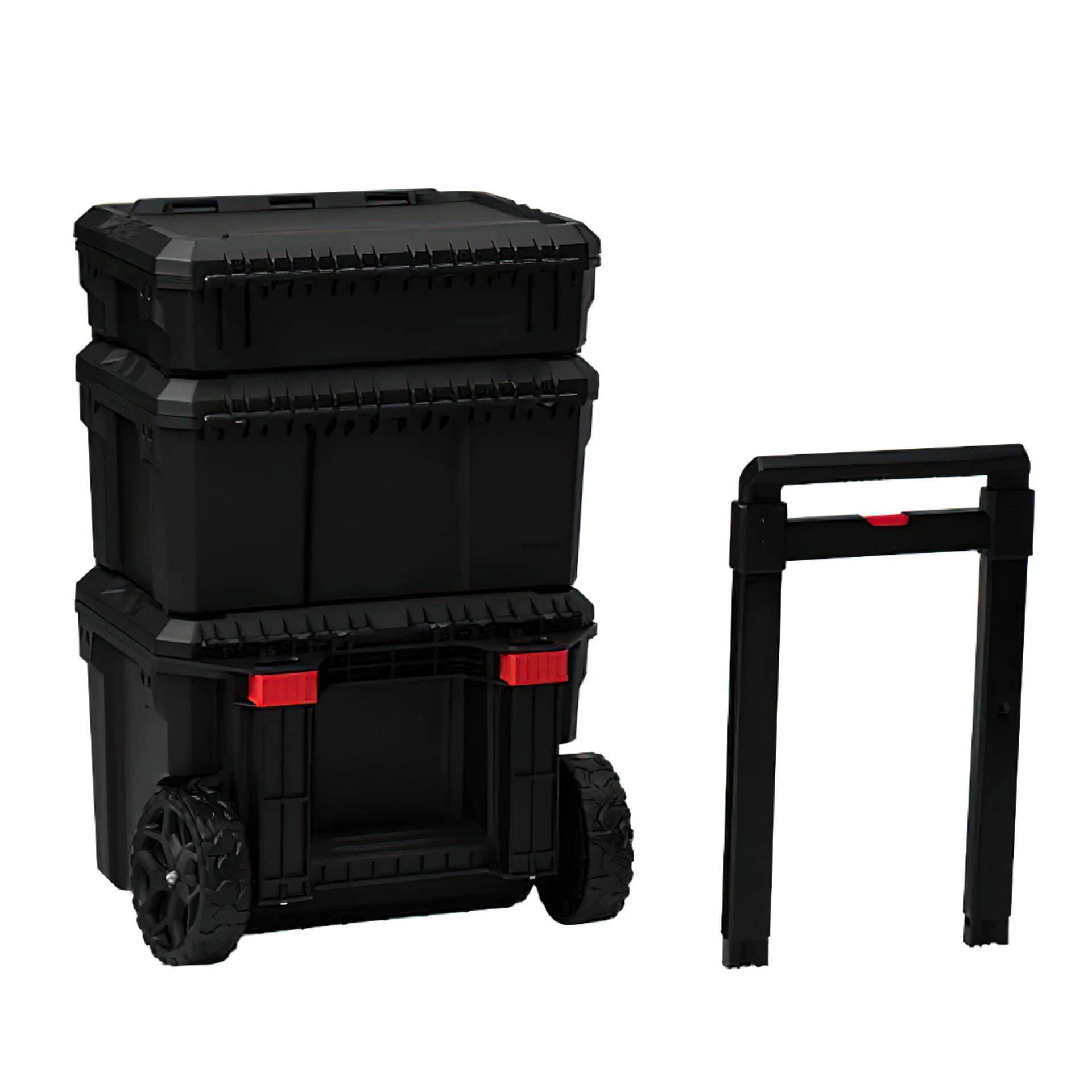 ☑️ Dolna skrzynka narzędziowa na kółkach z uchwytem teleskopowym umożliwia wygodny transport narzędzi również w trudnych warunkach.
