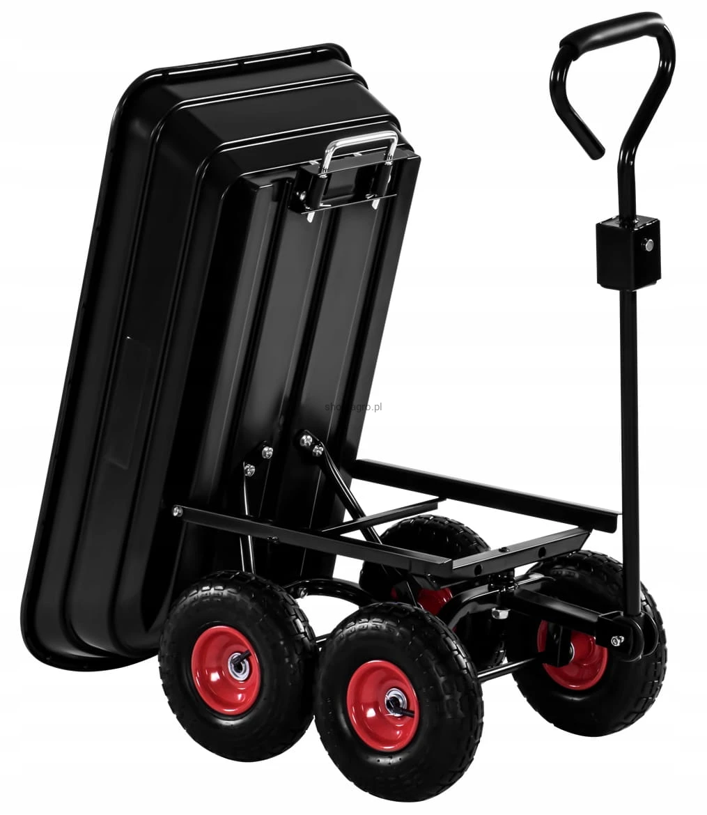 ➡️ Wózek ogrodowy wywrotka z odchylaną powierzchnią ładunkową znacznie ułatwia szybkie opróżnianie wanny bez konieczności ręcznego przenoszenia zawartości.