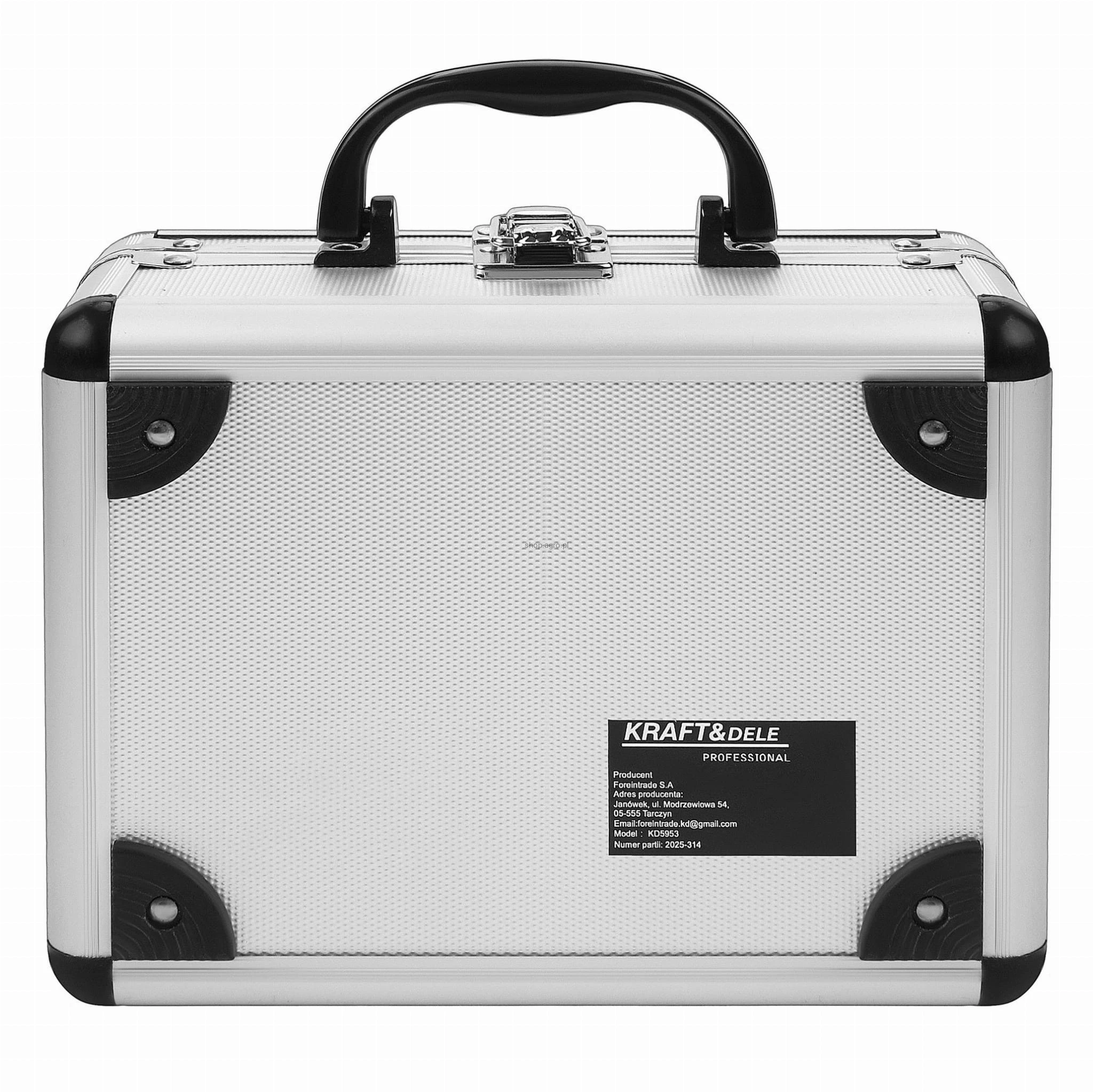 Elementy zestawu zostały starannie zapakowane w solidną walizkę z uchwytem do przenoszenia i zamykaną klamrą, co ułatwia organizację narzędzi i ich bezpieczne przechowywanie.