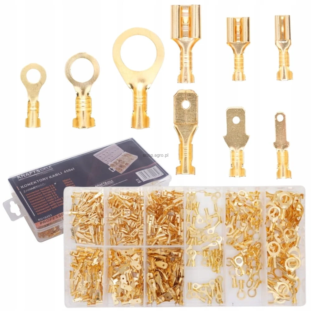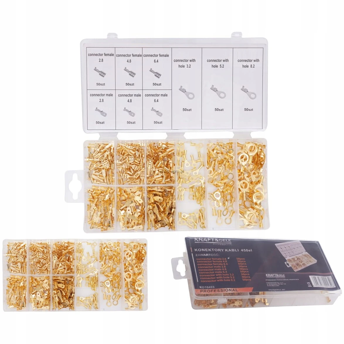 ZESTAW KONEKTORÓW SAMOCHODOWYCH MĘSKIE ŻEŃSKIE OCZKOWE 450 SZT KRAFT&DELE