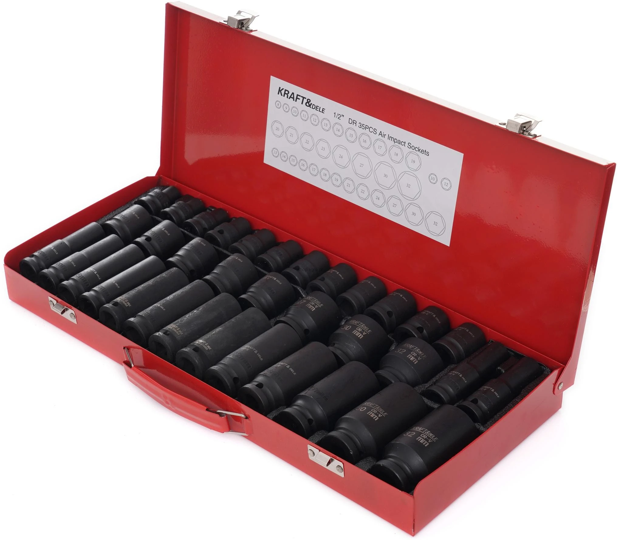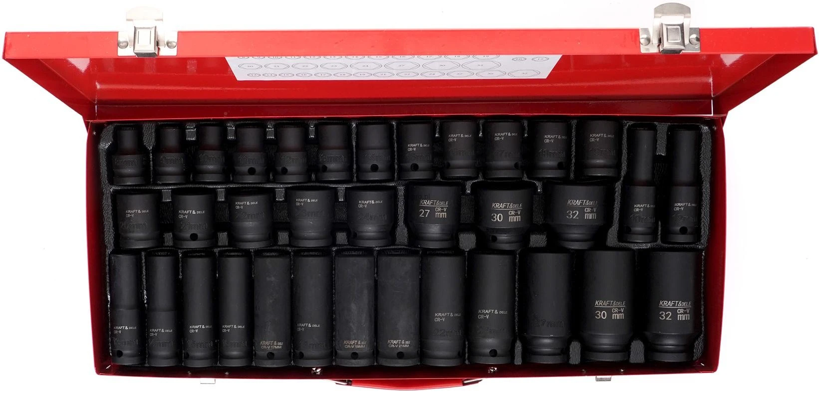 nasadki udarowe; zestaw nasadek; klucze udarowe; nasadki 1/2; nasadki cr-mo; nasadki do pneumatyki; zestaw do warsztatu; nasadki kraft&dele; KD11756; klucz udarowy akcesoria;