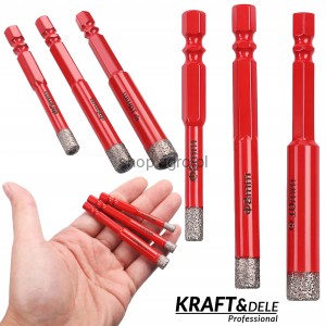 Zestaw trzech wysokiej jakości wierteł diamentowych KD12645 marki Kraft&Dele to idealne rozwiązanie dla profesjonalistów oraz amatorów zajmujących się wierceniem w twardych materiałach, takich jak gres, ceramika, lastryko czy kamień syntetyczny.