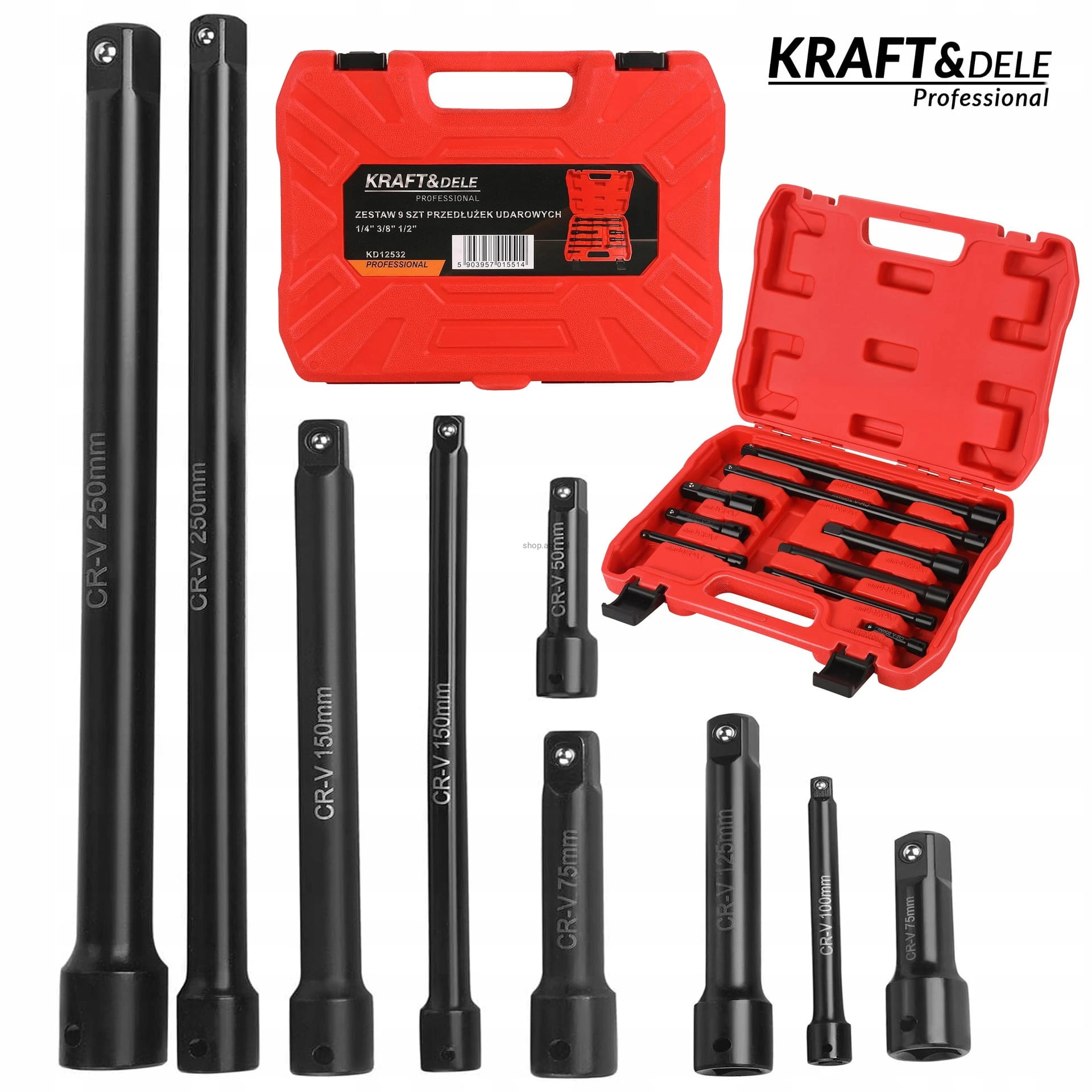 Zestaw Przedłużek Udarowych do Wkrętarek 9 Sztuk 1/4"" 3/8"" 1/2"" Kraft&Dele