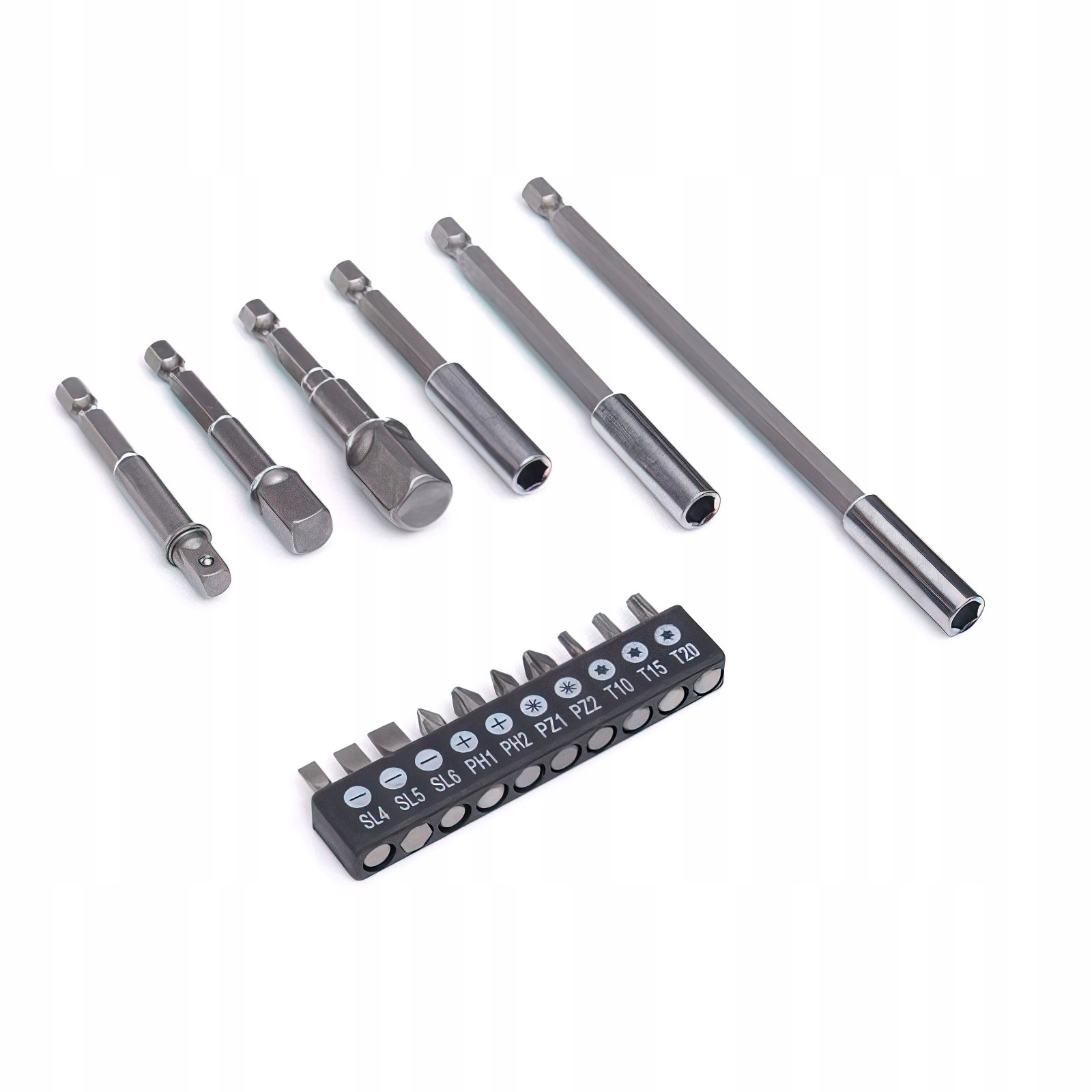 ☑️ Zestaw, który sprawdzi się zarówno w domowych, jak i profesjonalnych pracach. Zawiera 16 elementów, w tym bity, przedłużki i adaptery, które ułatwią wszelkie zadania związane z wierceniem i wkręcaniem.+