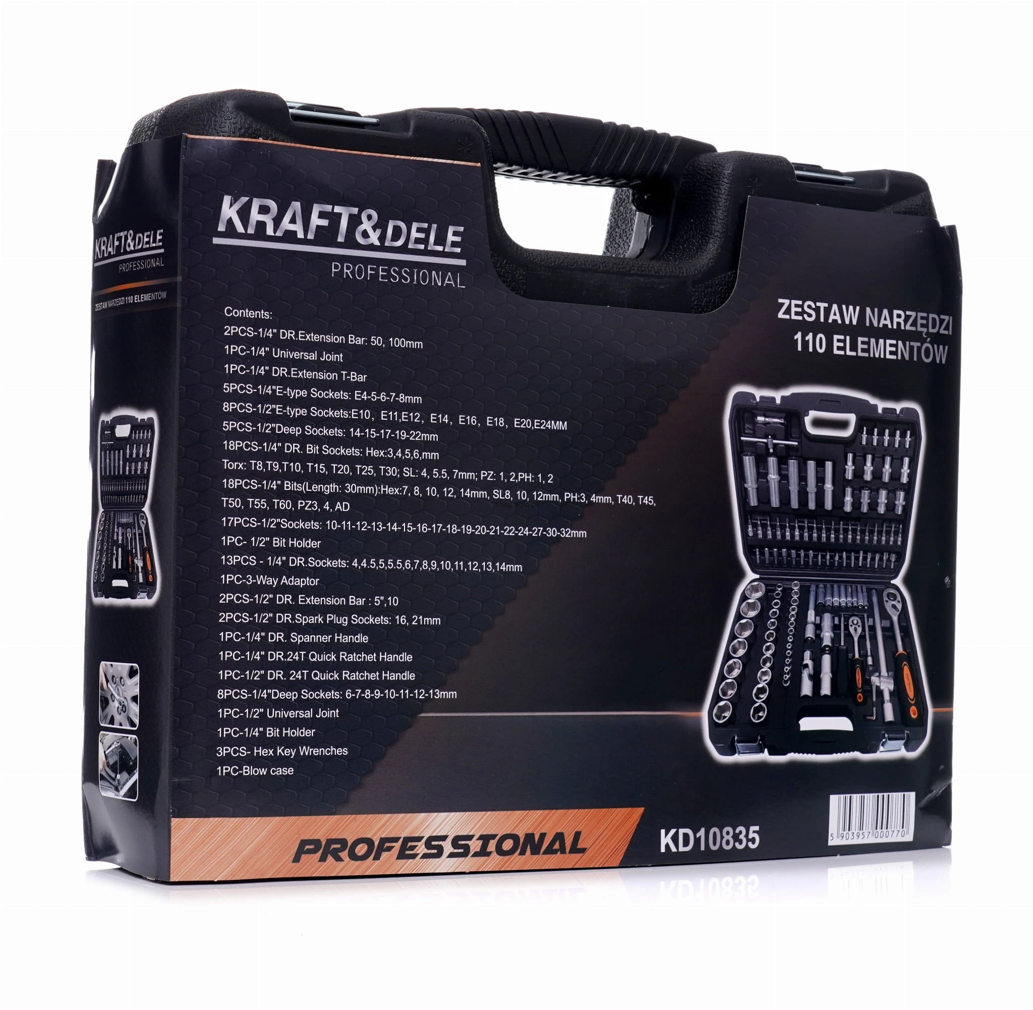 Niezwykle rozbudowany zestaw narzędzi marki Kraft&Dele o symbolu KD10835. Narzędzia cechuje solidne wykonanie, wytrzymałe materiały oraz poręczna walizka, w której każde narzędzie ma swoje miejsce.